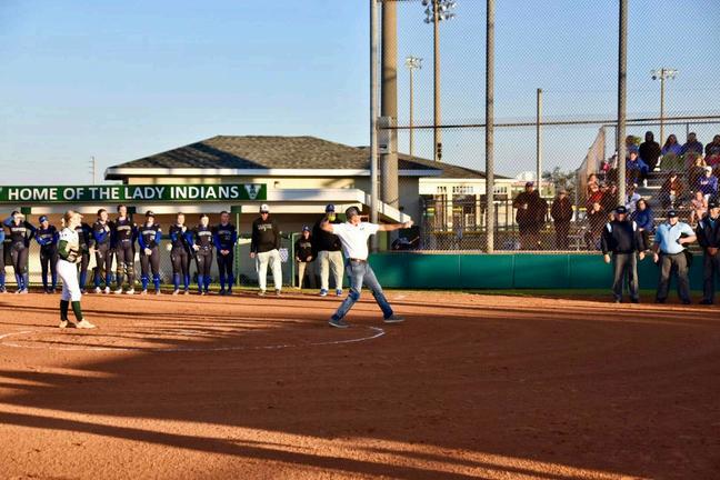 Top, members of Venice Fire Rescue attend the Venice High School Lady Indians softball game on March 11 for First Responder Night.