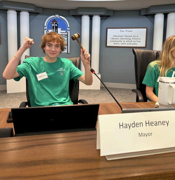 VHS students took part in a mock City Council meeting, stepping into the roles of Mayor and Council members, charter officers and staff. Agenda "presentations" ranged from redesigning Legacy Park, to extending the Venice Fishing Pier length to 1,546 feet, to purchasing office power nap pods, to a request for a robot assistants pilot program, to customizing potable water with flavors (in a “proposed” program given the moniker of “POUF” — Point of Use Flavor.) The "Council" asked some pretty tough questions of "staff" — everyone was impressed! Recently retired former city manager Ed Lavallee even put in an appearance in public comment, as did City Council Member Lloyd Weed. Watch the mock Council meeting here.