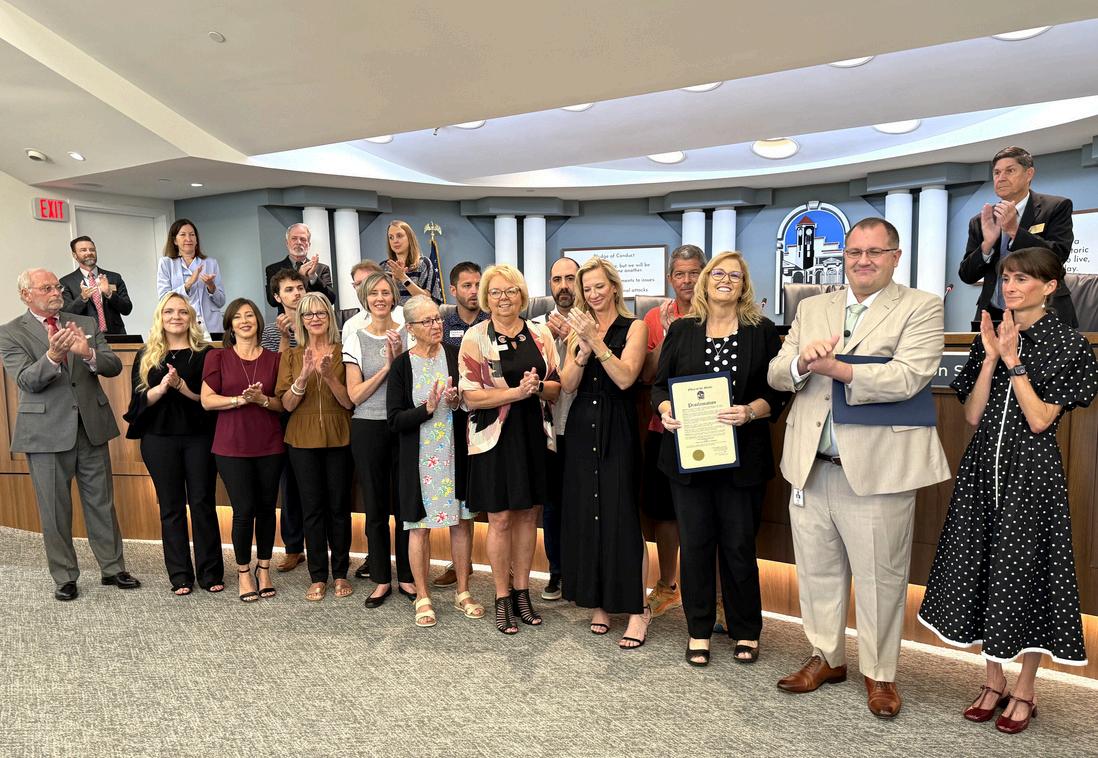 Mayor Nick Pachota recognizes Oct 14, 2025, as the Centennial Anniversary of the Venice Area Chamber of Commerce with a proclamation presented to Kathy Lehner, Chamber President/CEO, and her team during the Oct 14 City Council meeting