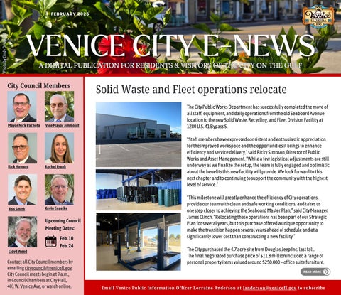 Make sure you are signed up for Alert Sarasota County/Everbridge, which provides location-specific alert notifications via phone, text, or email as you designate. That can be done by visiting alertsarasotacounty.com. In addition, messaging is distributed via the City’s website, venicegov.com