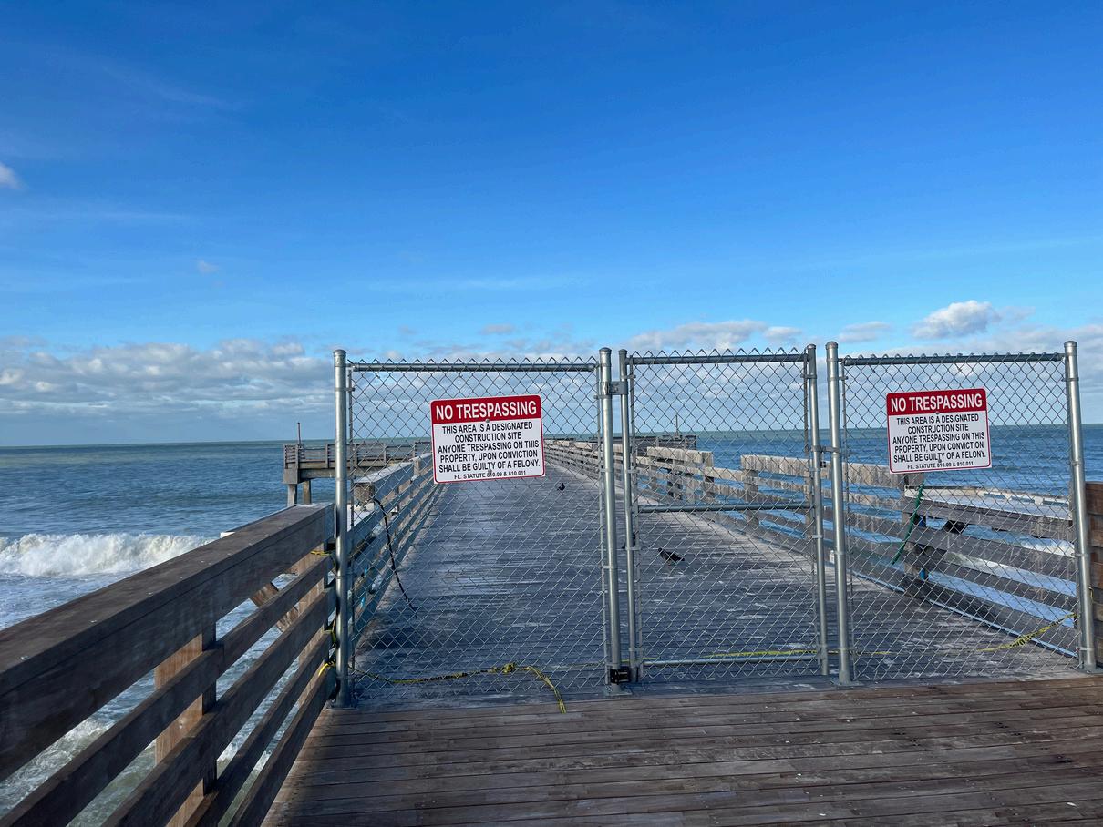 The Venice Municipal Fishing Pier partially reopened to the public on Nov. 21 following repairs from Hurricanes Helene and Milton A structural engineer authorized opening the pier past the bait shop to the second fish-cleaning station. A temporary fence was installed by Public Works, below. There will be periodic morning closures of the pier access as the City and Sharky’s work to complete remaining repairs and accommodate the restaurant’s ongoing renovation construction work. This partial reopening gives anglers and visitors access to the majority of the pier while more extensive repairs are made to the T end of the structure, expected to take several months to complete