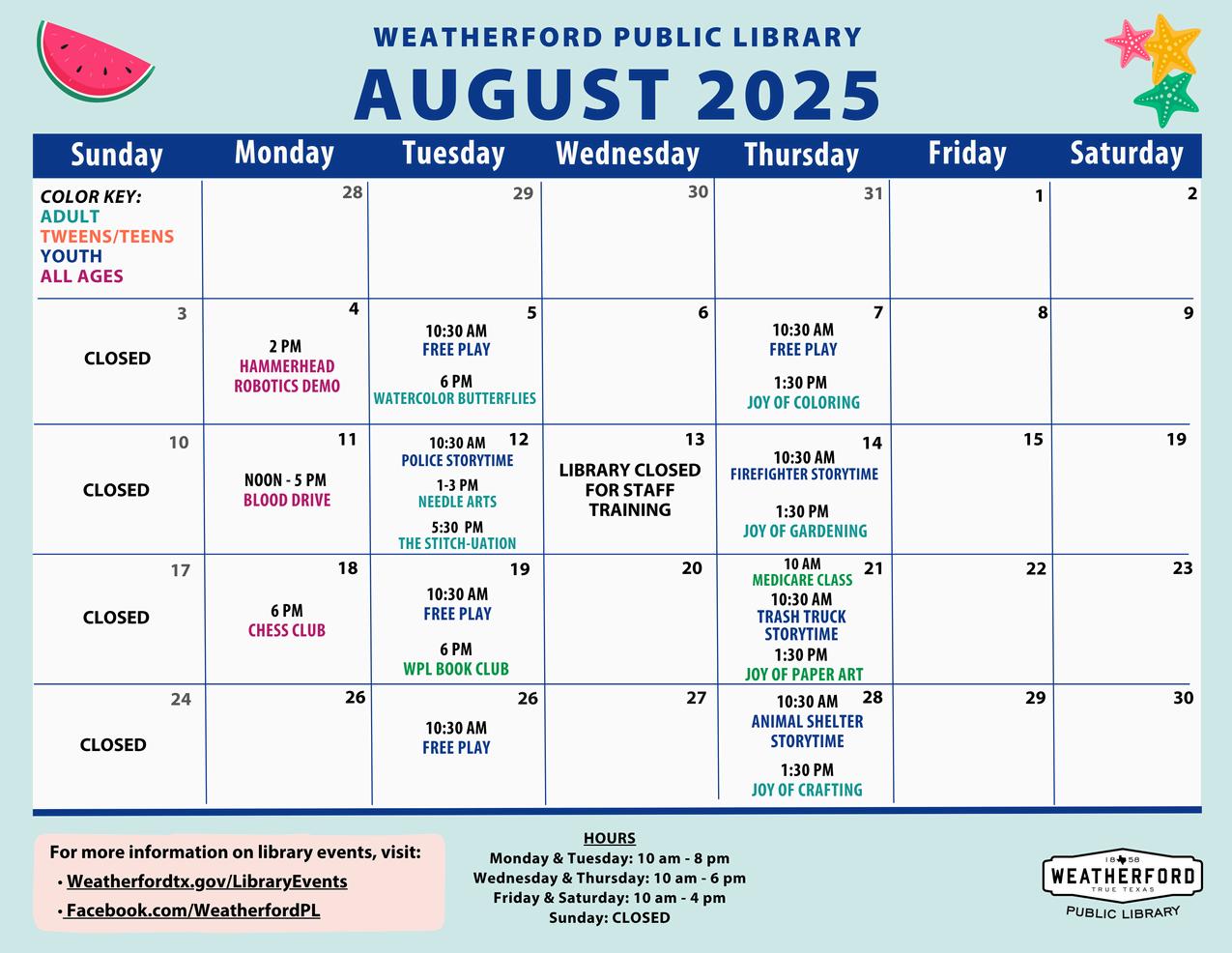 For more information, visit: weatherfordtx.gov/25/ParksRecreation-Special-Events