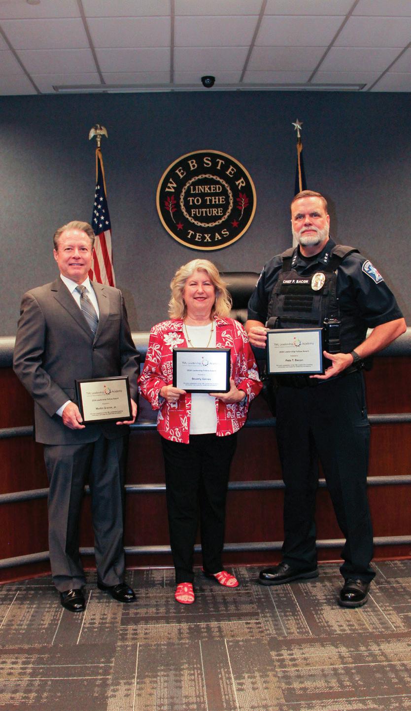 Join us in congratulating Councilmember Beverly Gaines, Councilmember Martin Graves, and Police Chief Pete Bacon for their commitment to excellence and dedication to our community. Their recognition as TML Leadership Fellows is a testament to their hard work and unwavering service.