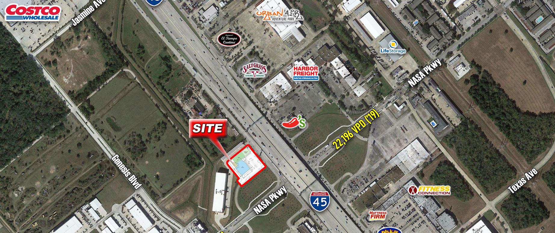 1020 NASA Parkway: Point NASA, located at the prime northeast intersection of the Gulf Freeway and NASA Parkway, is anchored by exciting retailers and entertainment venues, like Whiskey River South, Chili’s, Guitar Center, Harbor Freight, The Play Space, and Clutch Bar & Grill (coming soon).