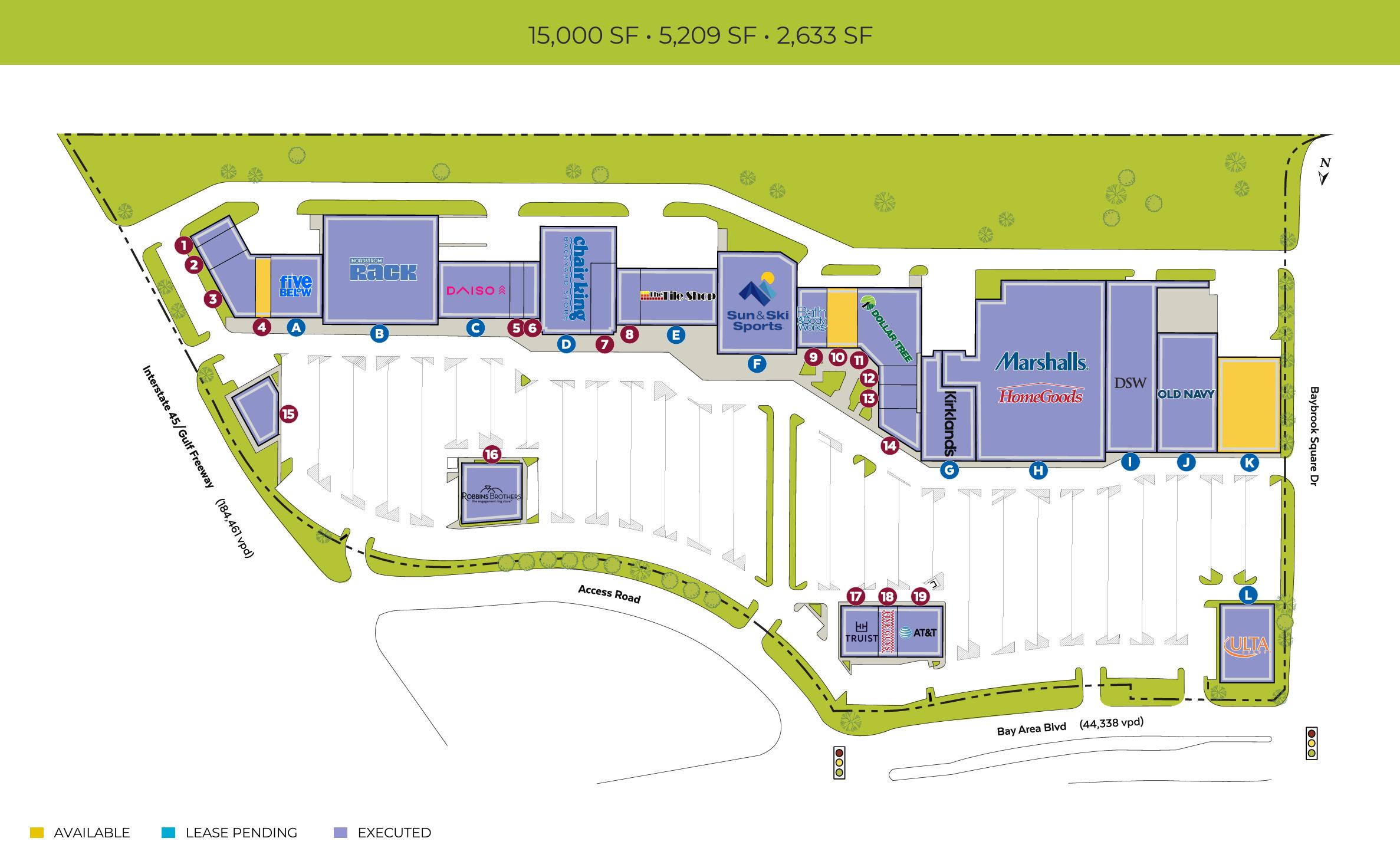 Currently, Baybrook Square has a 5,209 square foot space and a 2,633 square foot space available for lease.