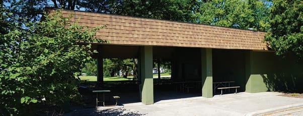 This large, open shelter accommodates 100 people and includes eight electrical outlets, restrooms, 12 picnic tables, and street parking. Two playgrounds, a softball diamond, basketball court, and tennis court are nearby. Rentals are available from the third weekend in April to the third weekend in October.