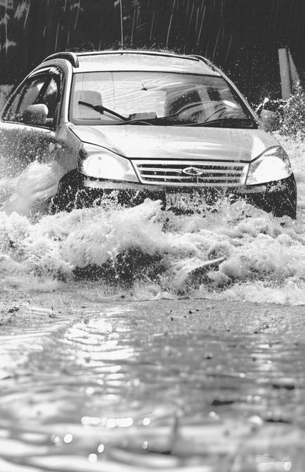 • If trapped in a vehicle in a rapidly moving water, seek refuge on the roof.