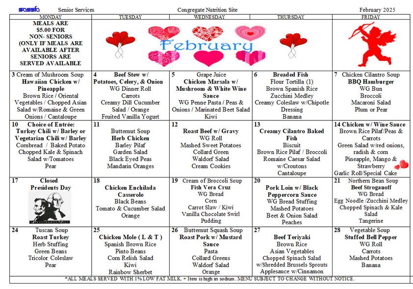 Happy Valentine’s Day from your City of Whittier Senior Center Staff!