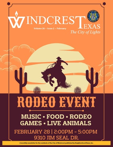 Celebrating National Volunteer Month Women’s Club Citizens Patrol Board & Commission Members NEIGHBORS HELPING NEIGHBORS Garden Club Little League TxWeACT Volunteer Fire Alliance Boy & Girl Scouts of America You Shine the Light of Windcrest! Thank You for All you Do! Lion’s Club American Legion T Volume 24 • Issue 4 • April 2024 A monthly newsletter for the residents of the City of Windcrest published by Neighborhood News, Inc.