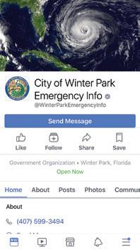 n facebook.com/ WinterParkEmergencyInfo [@WinterParkEmergencyInfo]