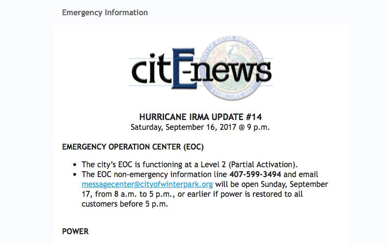 n cityofwinterpark.org/citEnews subscribe & receive hurricane info via email