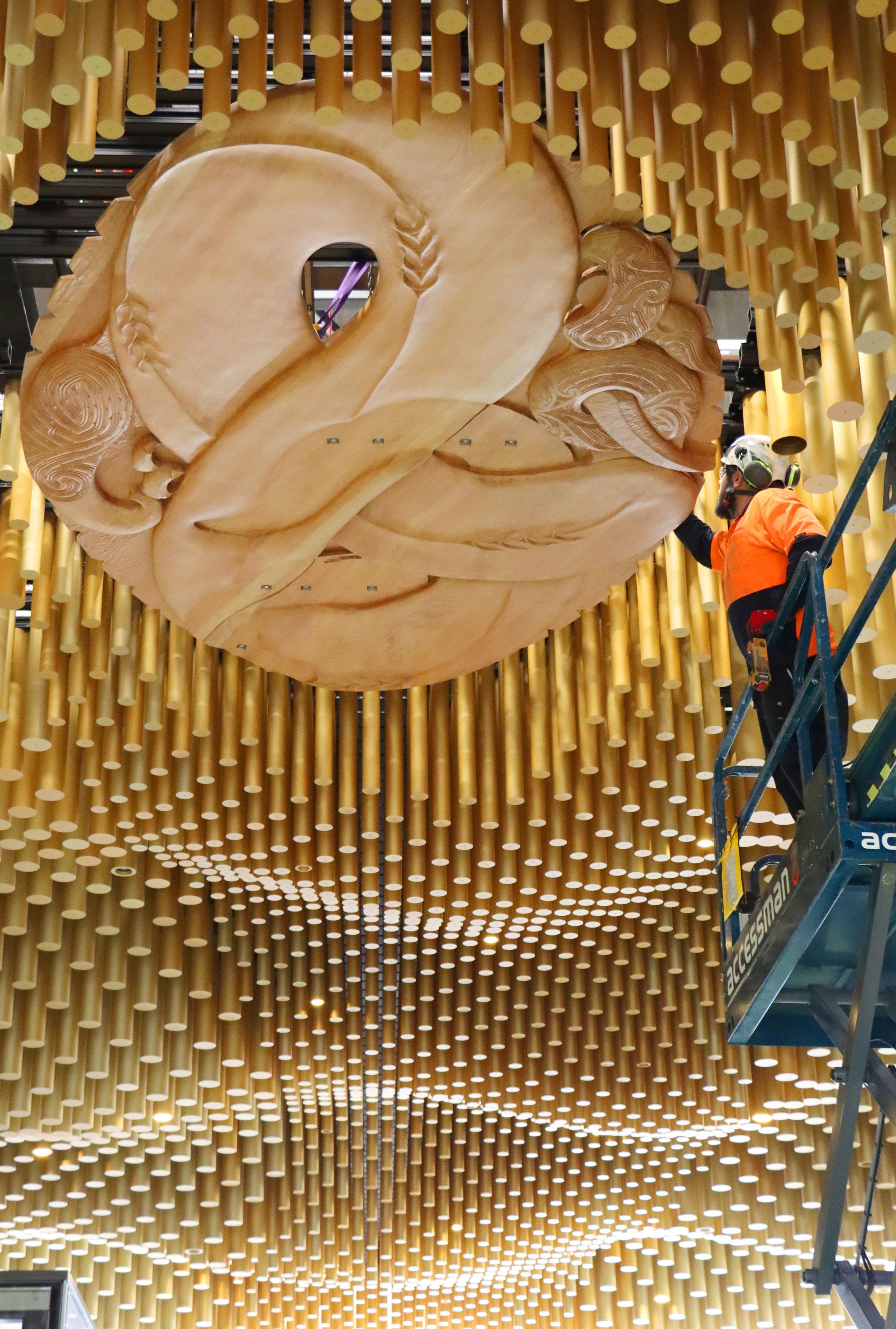 The kaitiaki was installed in Te Waihorotiu Station’s ceiling.
