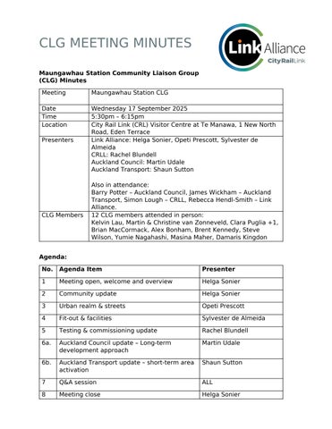 CRL Ltd also co-ordinates closely with Auckland Council on streetscapes, urban realm reinstatement and regulatory matters through regular interactions, and with the New Zealand Transport Agency Waka Kotahi as the rail safety regulator.