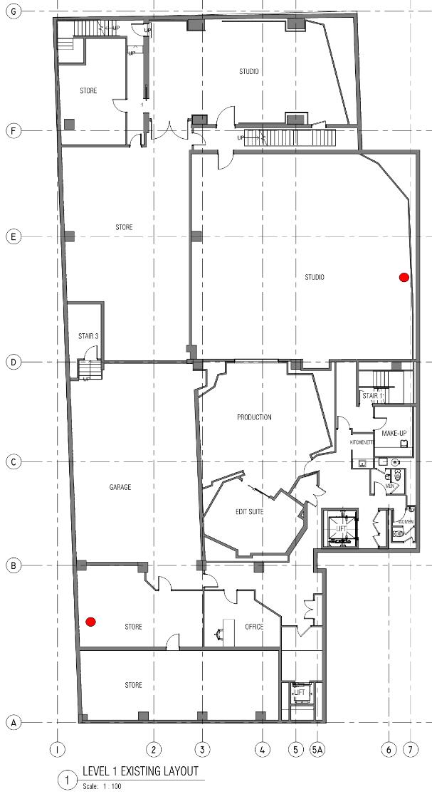 Floor of Studio 1 (Sensitive Times). If compliant in Studio 1, vibration in other studios will be acceptable.