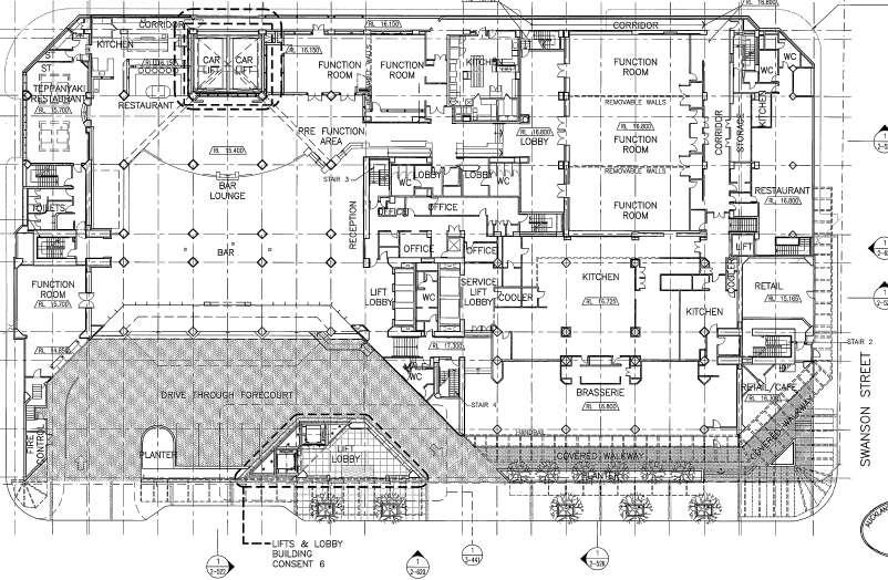 The Stamford Residences occupies the building at 22-26 Albert Street from Level 12 to Level 23 The lower levels of the building are occupied by the Stamford Plaza Hotel.