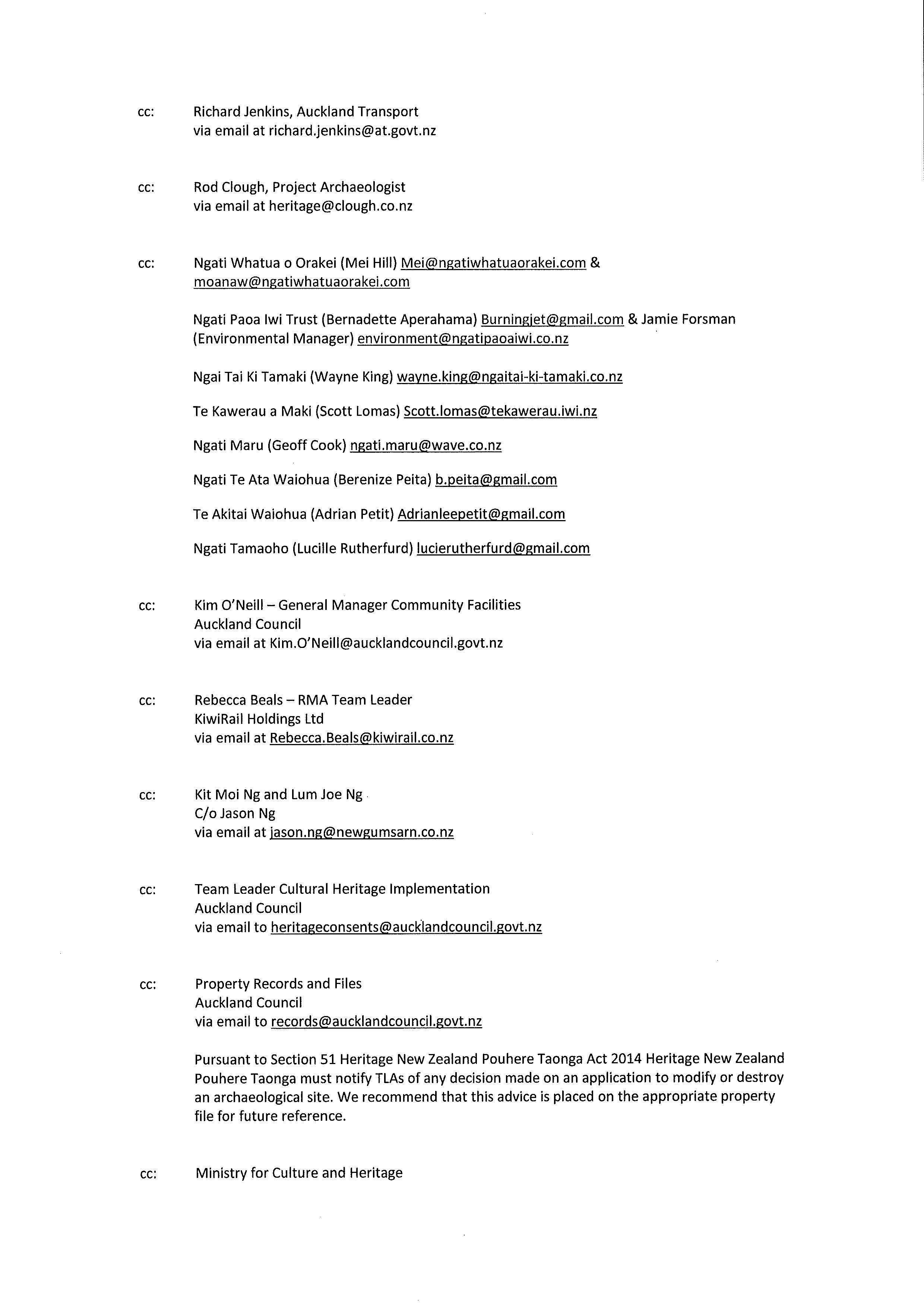 Table 3 1 outlines the contact details of the Project Archaeologist, Mana Whenua, Auckland Council Heritage and HNZPT.
