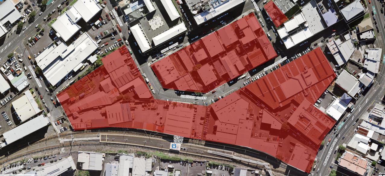 1 1: CRL Mt Eden demolition area Arrows indicate the location of buildings relevant to the Historic Character DWP Archaeology Section located within the demolition area at 31 Shaddock Street (left arrow), 19 Shaddock Street (central arrow) and 6 Flower Street (right arrow)
