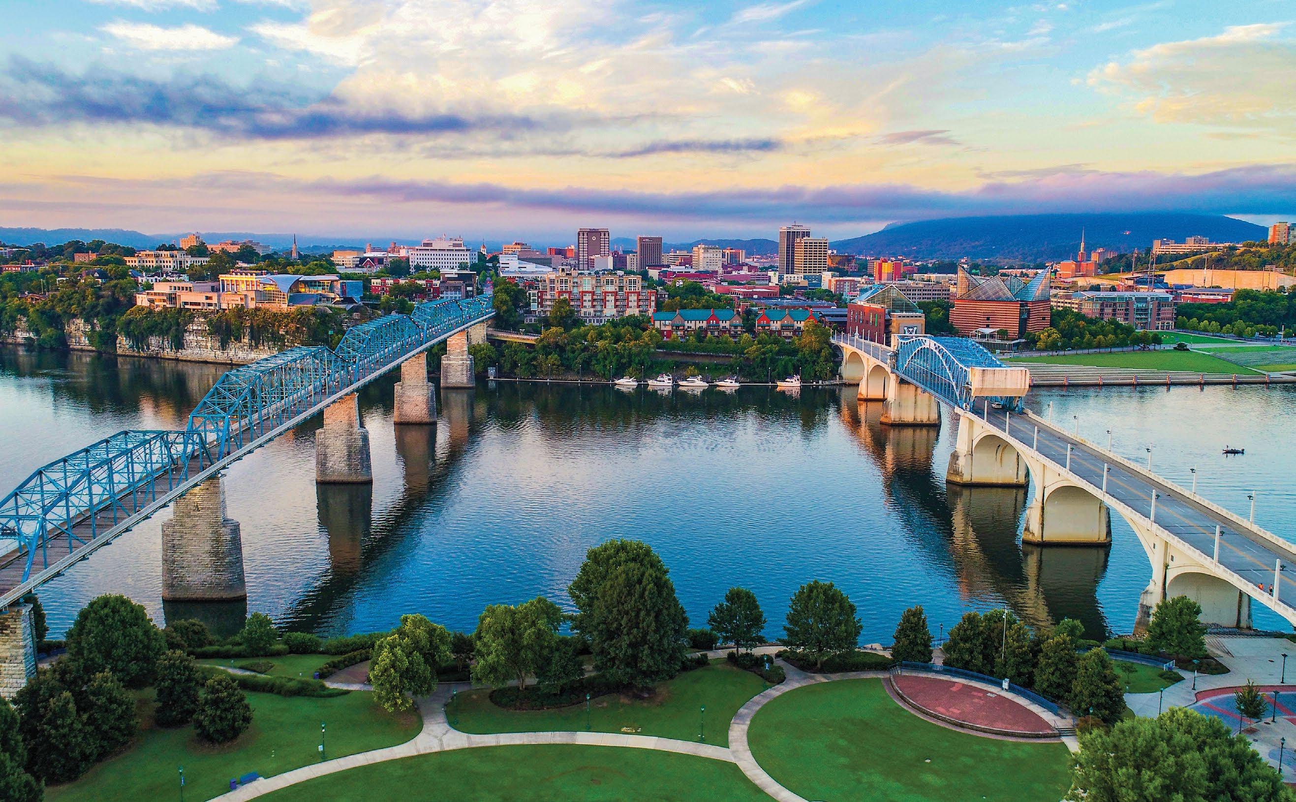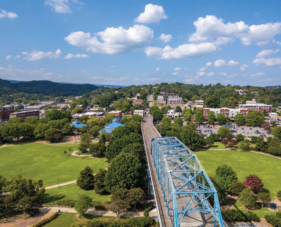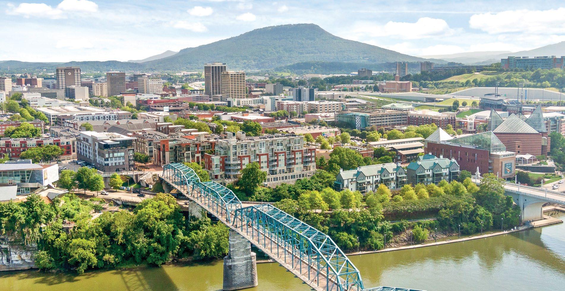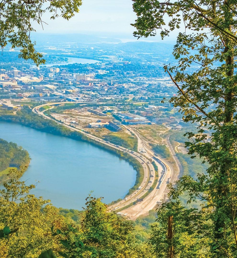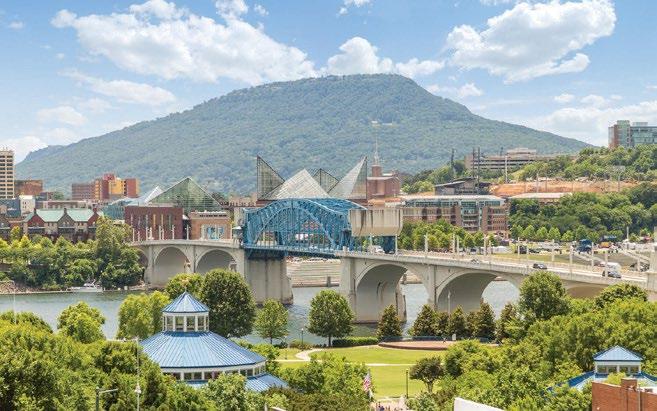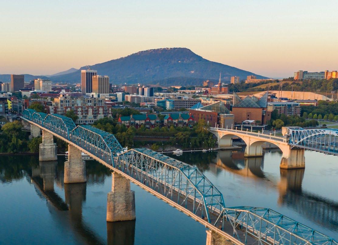 Fittingly called the Scenic City, a major draw when choosing Chattanooga is the beautiful landscape and diverse outdoor adventures. There is no shortage of recreational opportunities, with hiking, rock climbing, mountain biking, rowing, fishing, and boating among the top pursuits. More than 50 trailheads can be accessed within 30 minutes of the heart of the city, while several state parks, offering mountain terrain, waterways, caves, and canyons, are just a short drive away. Plus, the 16-mile Riverwalk, a walking path stretching along the Tennessee River from St. Elmo through downtown Chattanooga, can be found in the middle of the city. Also of note are the top-notch familyfriendly attractions. Tennessee welcomed over 144 million visitors in 2023 with Chattanooga alone hosting over 15 million visitors annually. Naturally, Condé Nast Traveler named Chattanooga the “Friendliest City in the U.S.” while TravelPulse noted our town as one of the “Top 10 Underrated US Cities to Visit This Summer.”