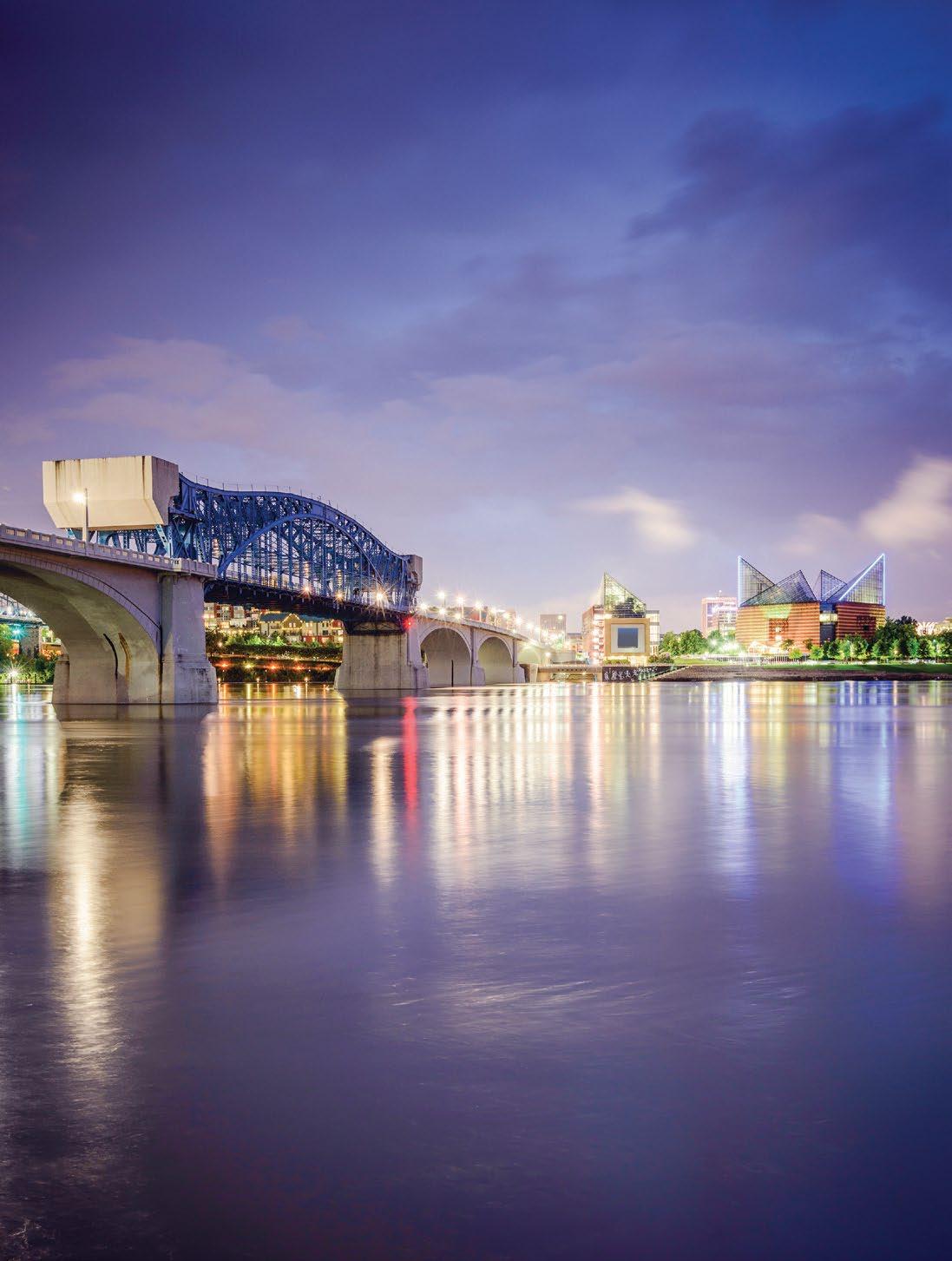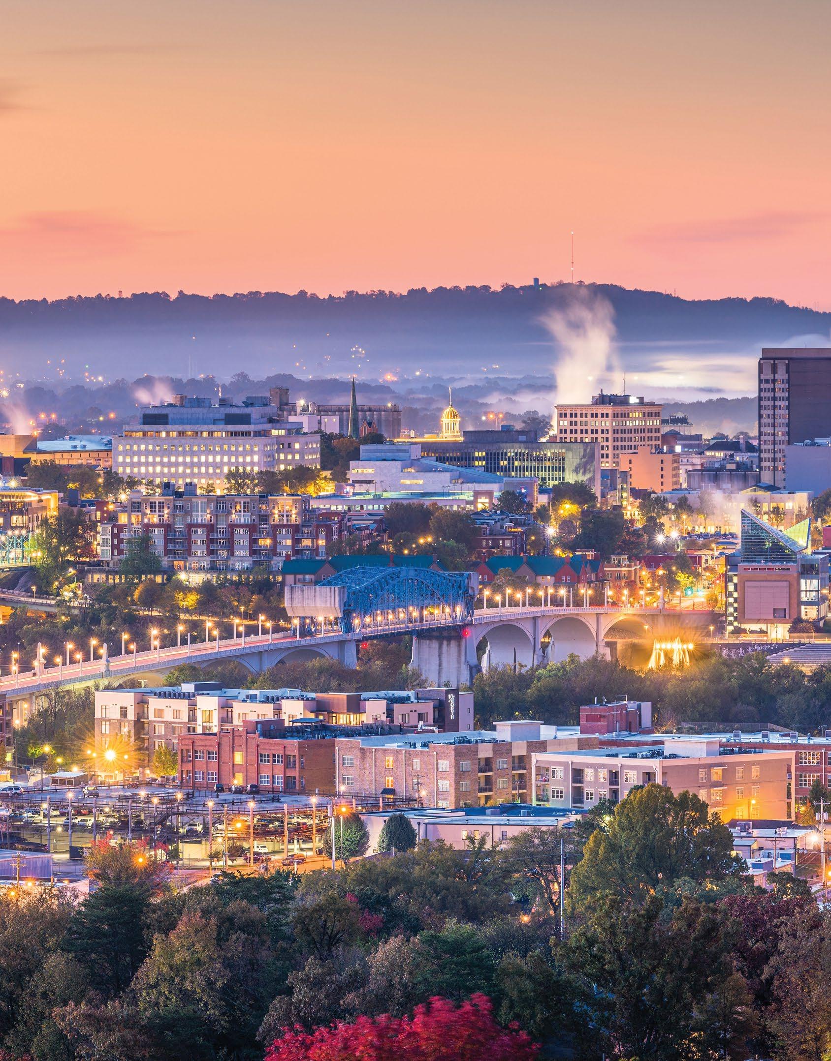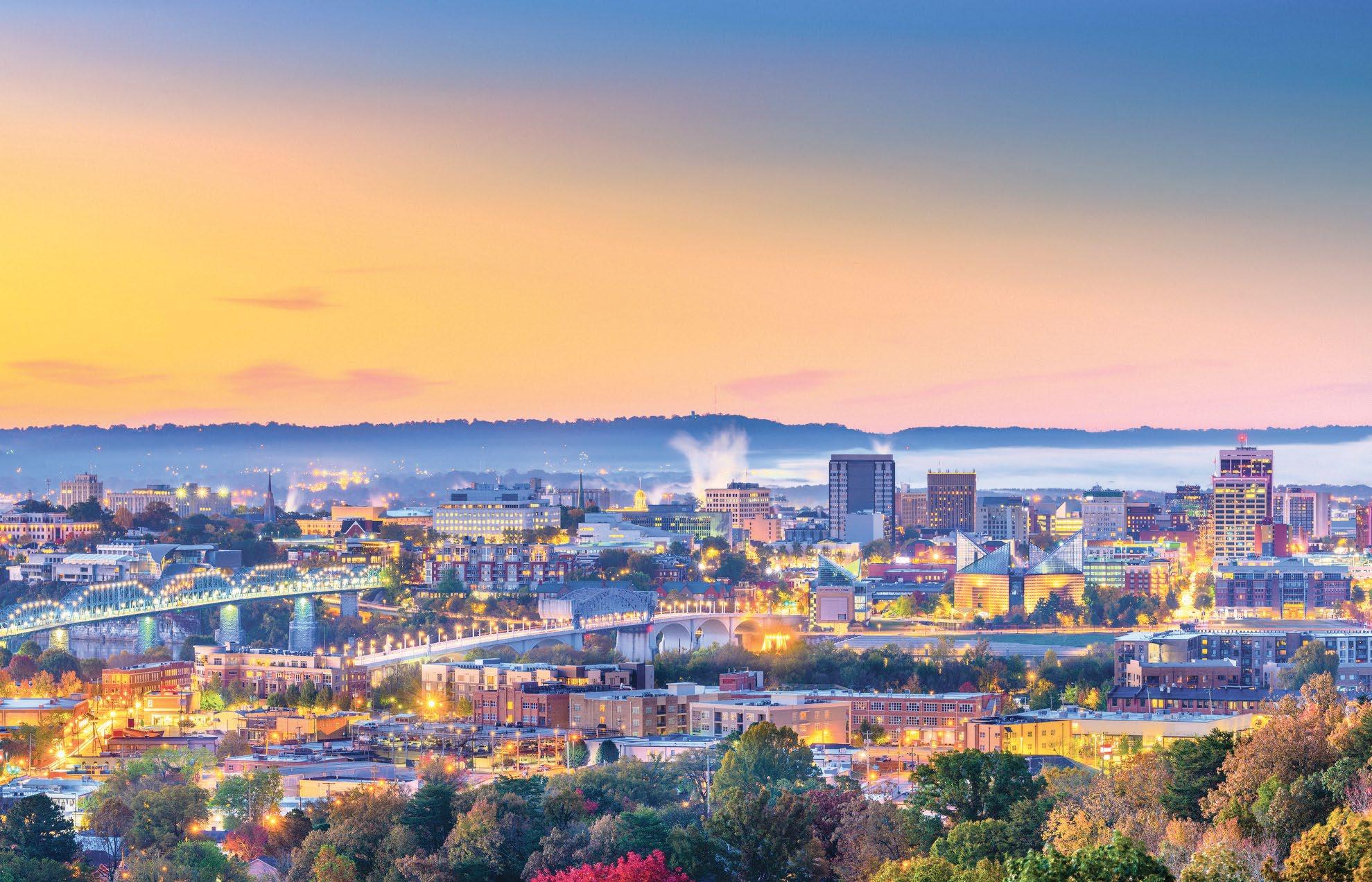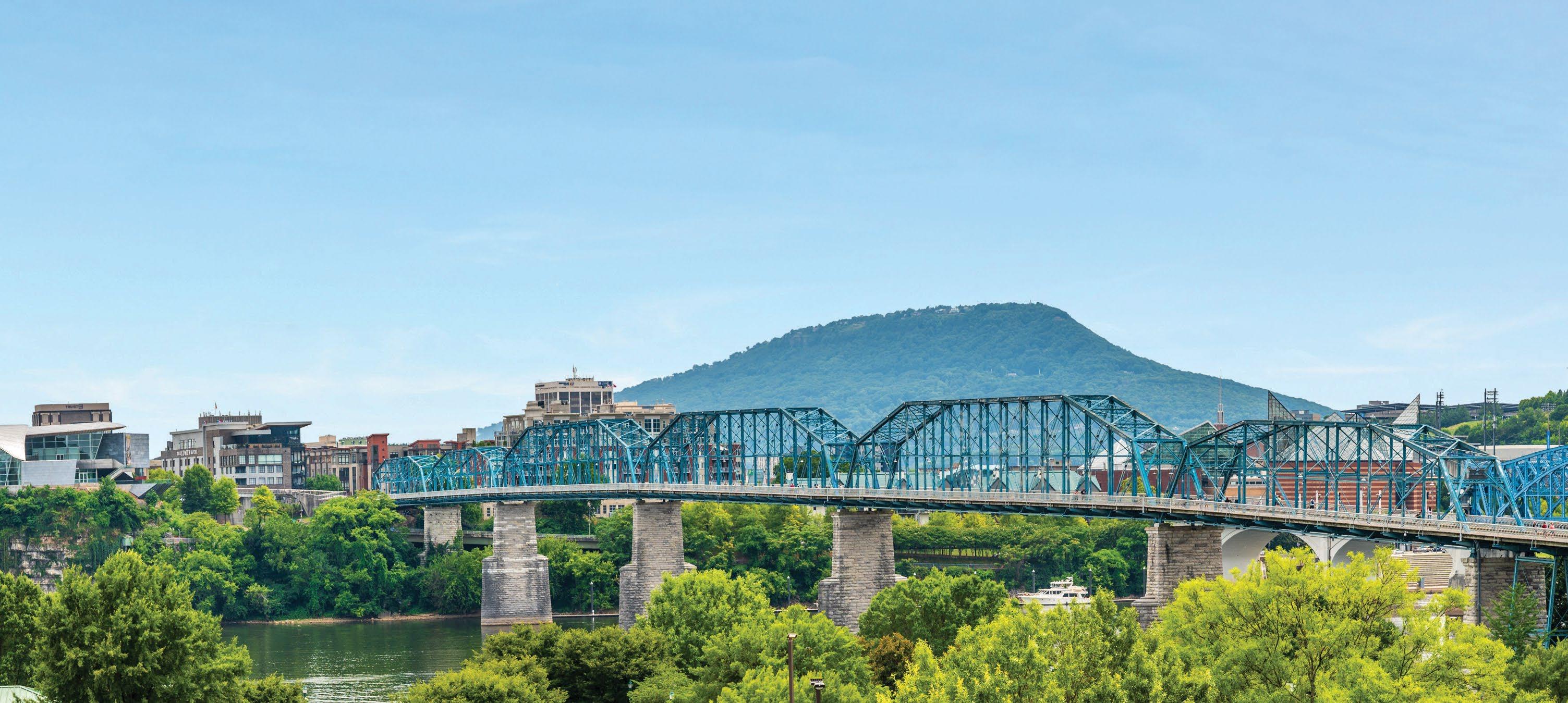 Fittingly called the Scenic City, a major draw when choosing Chattanooga is the beautiful landscape and diverse outdoor adventures. There is no shortage of recreational opportunities, with hiking, rock climbing, mountain biking, rowing, fishing, and boating among the top pursuits. More than 50 trailheads can be accessed within 30 minutes of the heart of the city, while several state parks, offering mountain terrain, waterways, caves, and canyons, are just a short drive away. Plus, the 16-mile Riverwalk, a walking path stretching along the Tennessee River from St. Elmo through downtown Chattanooga, can be found in the middle of the city. Also of note are the top-notch familyfriendly attractions. Tennessee welcomed over 144 million visitors in 2023 with Chattanooga alone hosting over 15 million visitors annually. Naturally, Condé Nast Traveler named Chattanooga the “Friendliest City in the U.S.” while TravelPulse noted our town as one of the “Top 10 Underrated US Cities to Visit This Summer.”