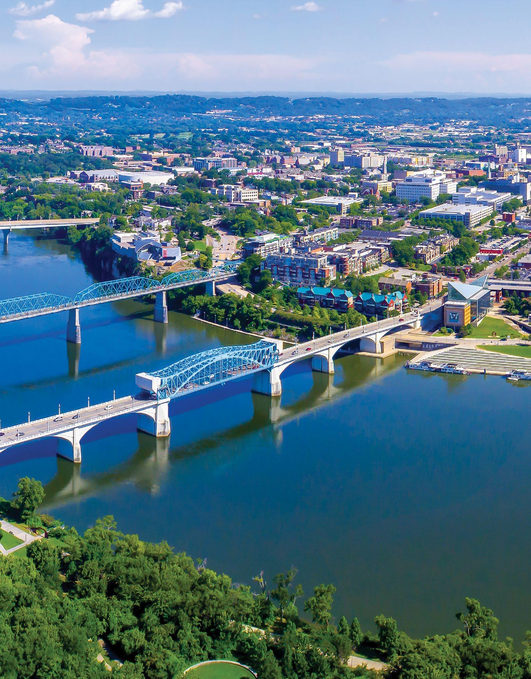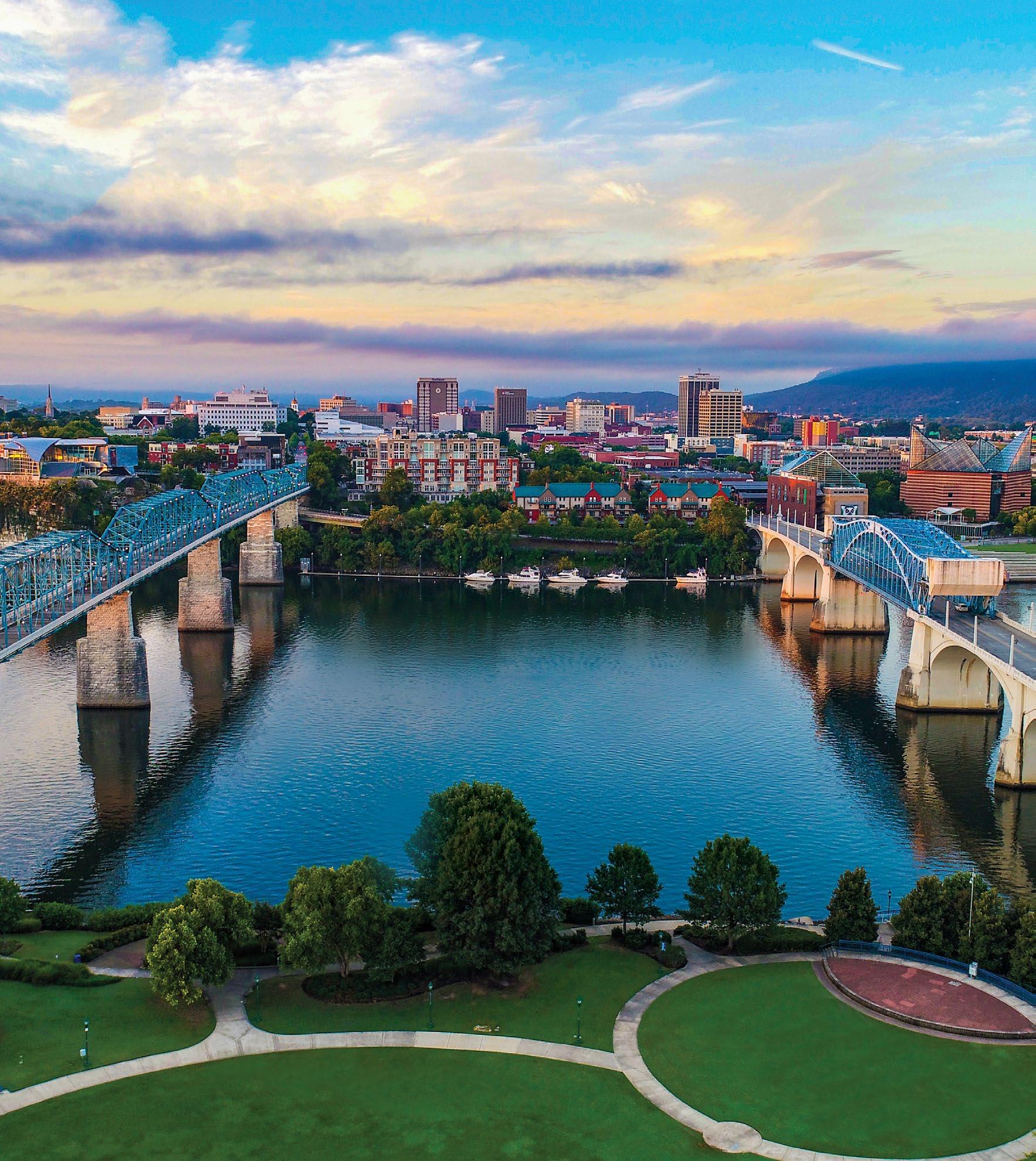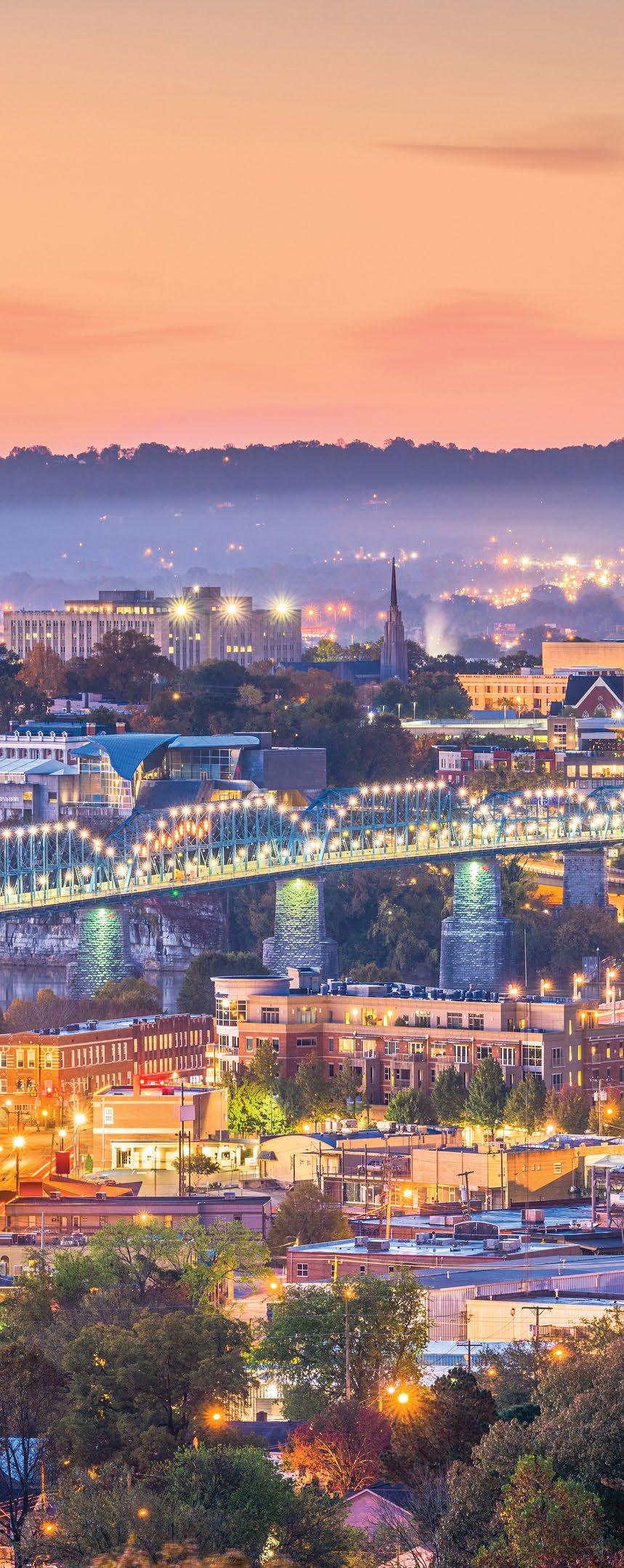 Welcome to Chattanooga! Whether visiting or relocating, Chattanooga offers a businessfriendly environment, unparalleled outdoor pursuits, lower cost of living, and welcoming neighbors. In fact, U.S. News & World Report named Chattanooga “The Best Place to Live in Tennessee,” while Southern Living ranked Chattanooga as one of “The South’s Best Cities.” Regardless of what brought you here, you’ve made a great choice! If in town for business, you’re among good company. With the world’s fastest internet, access to rail, water, and major highways, and business-friendly policies, opportunities for entrepreneurs and companies abound. In 2024, CNBC ranked Tennessee No.8 in its annual “America’s Top States for Business,” and Business Facilities ranked Tennessee No.5 for “Best Business Climate.” 2024 was another successful year for the Chattanooga business community, and the