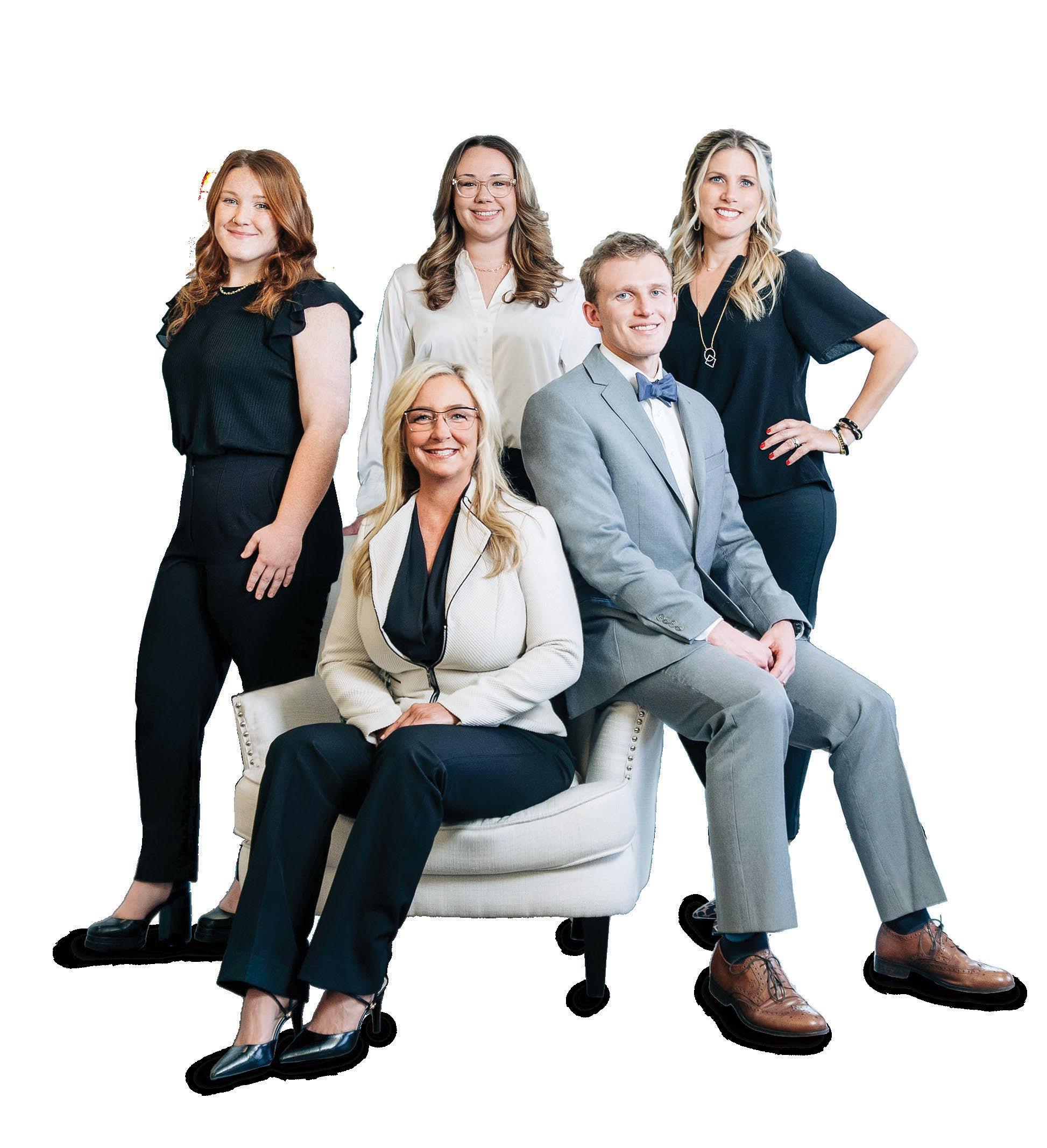 Tony D’Andrea, CPA, CFP® // Front row from left to right: Briana Hazelwood, Client Svc. Assoc. // Wendy Railey, Client Svc. Assoc. Julie Elsea, Financial Advisor // Amy Bee, Client Svc. Mgr. // Lisa Listecki, Ops. Mgr.