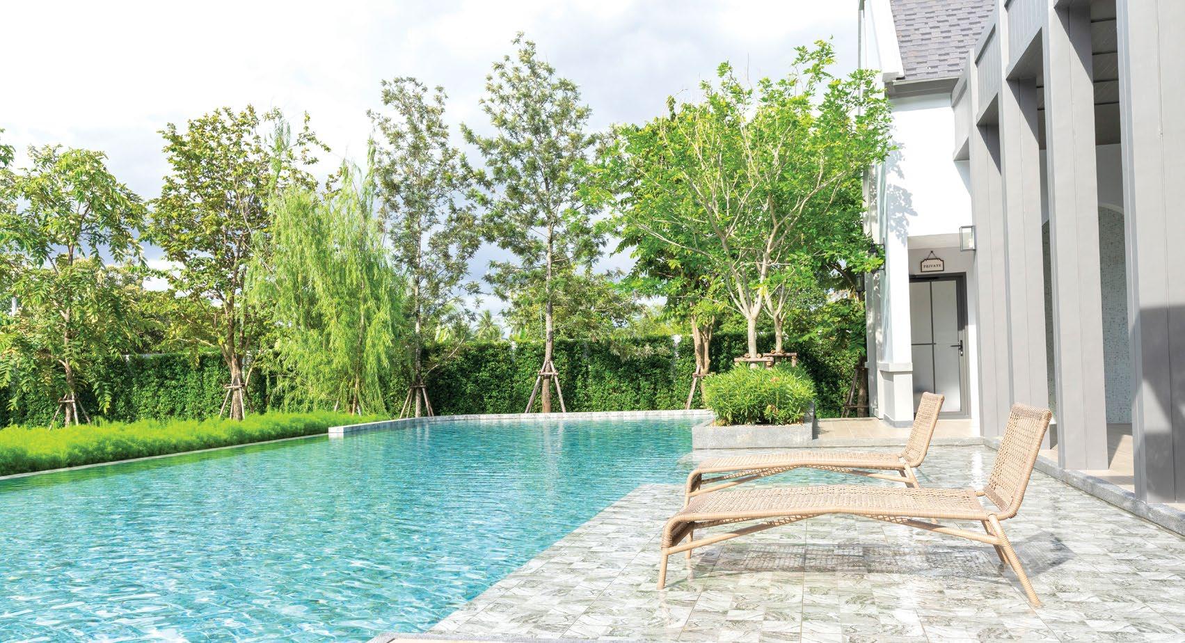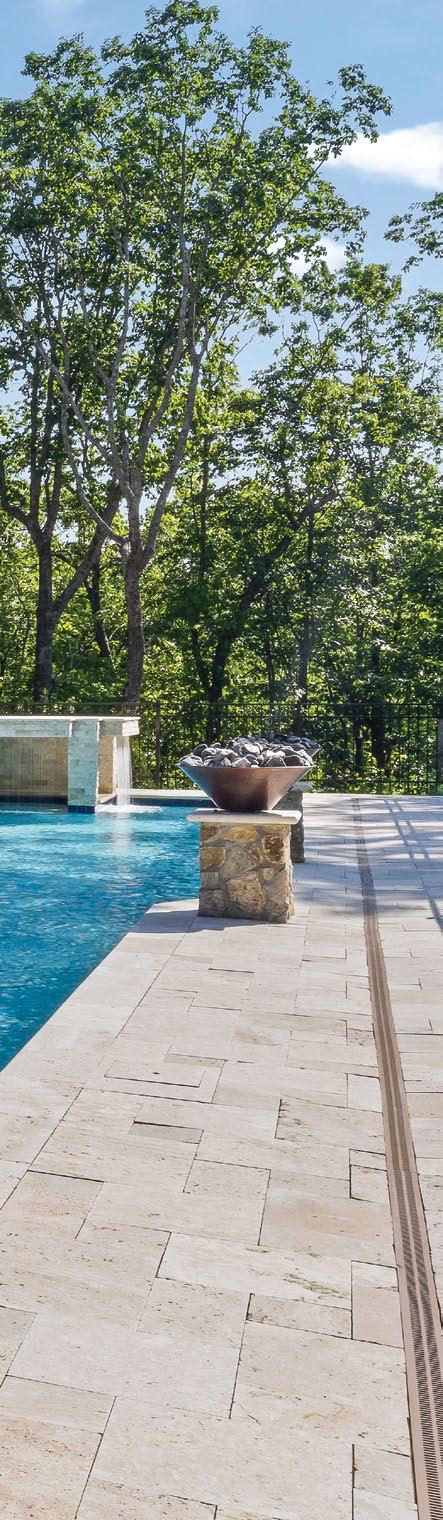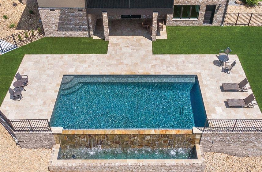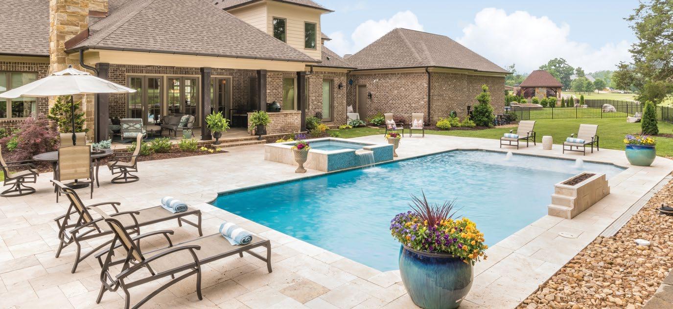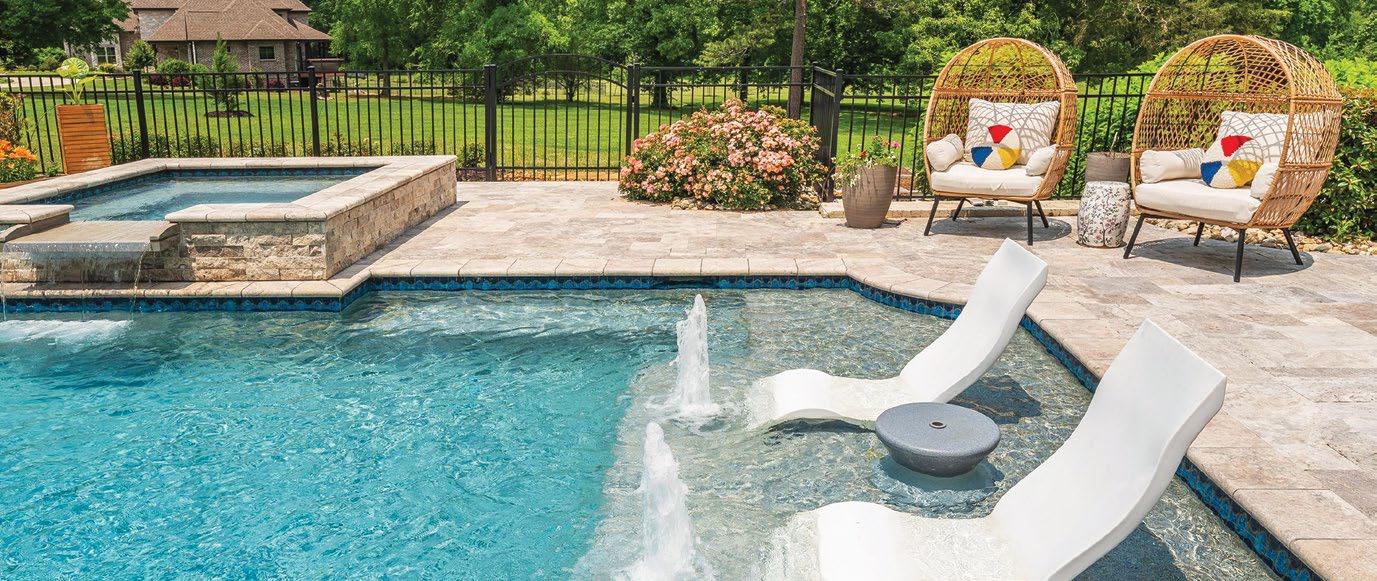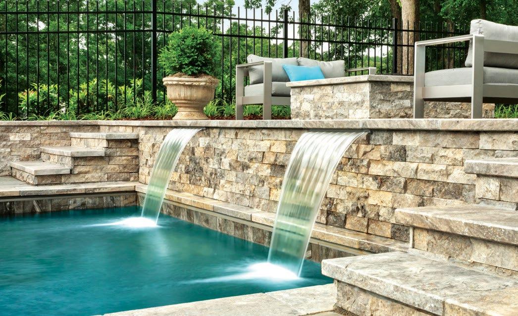 A customized poolscape is an excellent way to play around with color in your backyard. Start by creating a timeless look with a pool deck material that complements the exterior of the home – this creates an excellent canvas to add color using plantings, accessories, and other less permanent features, leaving room for your style to change over the years. For those who want to make a real splash, lighted fountains, bubblers, sheer descent waterfalls, and deck jets with colorcoordinated LED lighting are versatile options that allow you to create the ultimate light show – right in your back yard. With remote control and automation of these features, you have the flexibility to choose from a full spectrum of colors to suit any mood or occasion.
