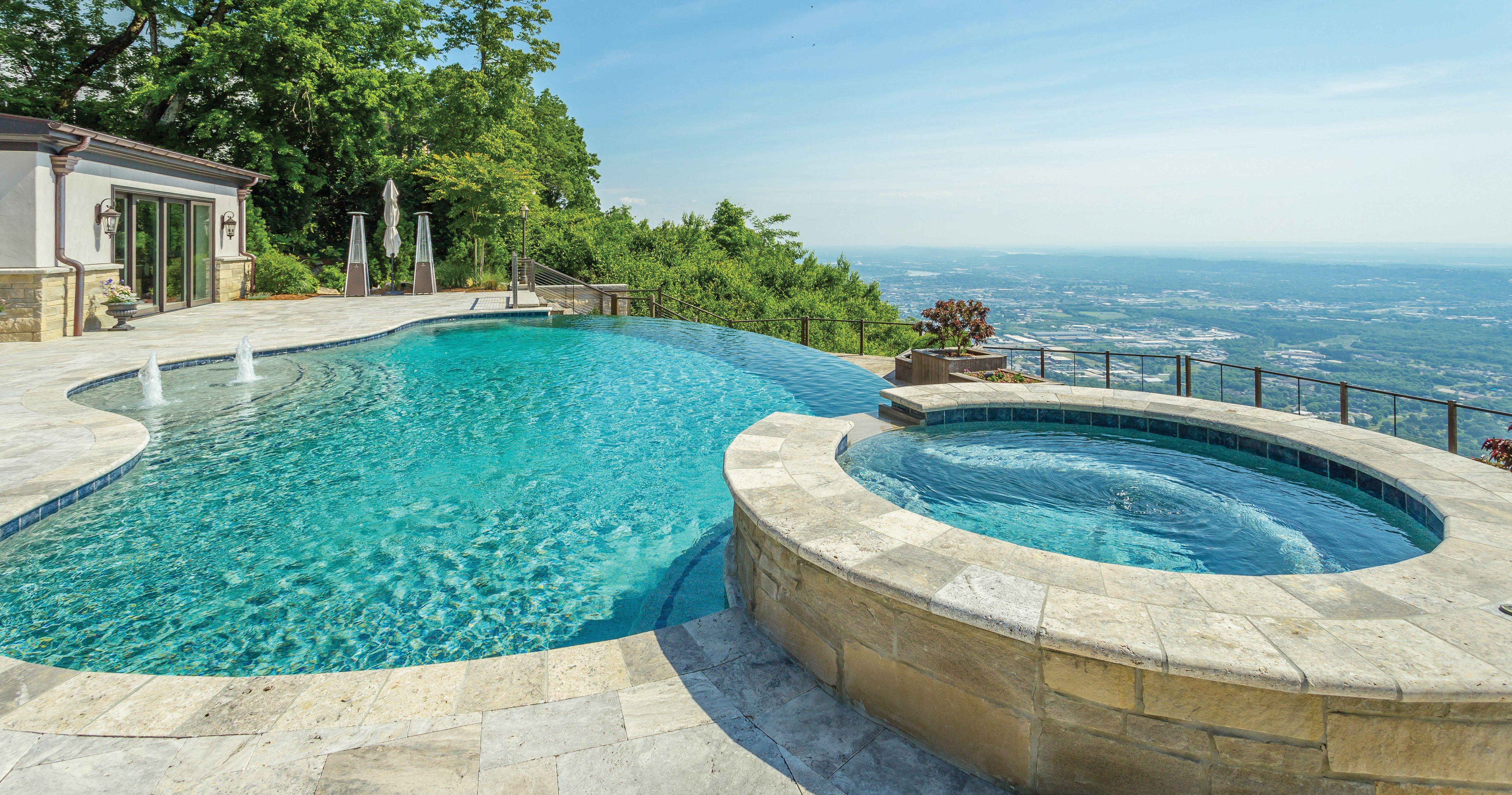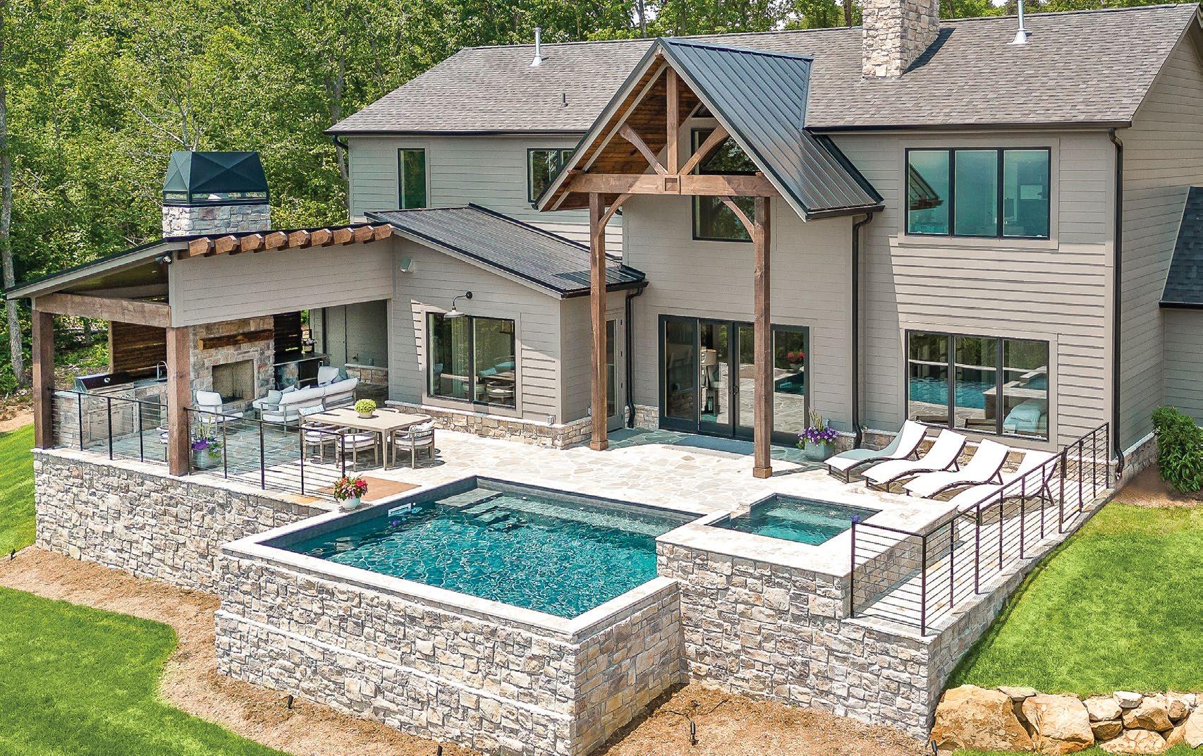 Pool contractor: Aquarium Pools of Chattanooga | Poolscape architect: Mike Finley, Aquarium Pools of Chattanooga | Builder: Jamie Hensley, RiverBirch Homes | Ironwork: Beaty Fabricating, Inc. | Landscaping: Rock Rankin and Rebecca Scoggins | Stonework: Lowery Stone Masonry
