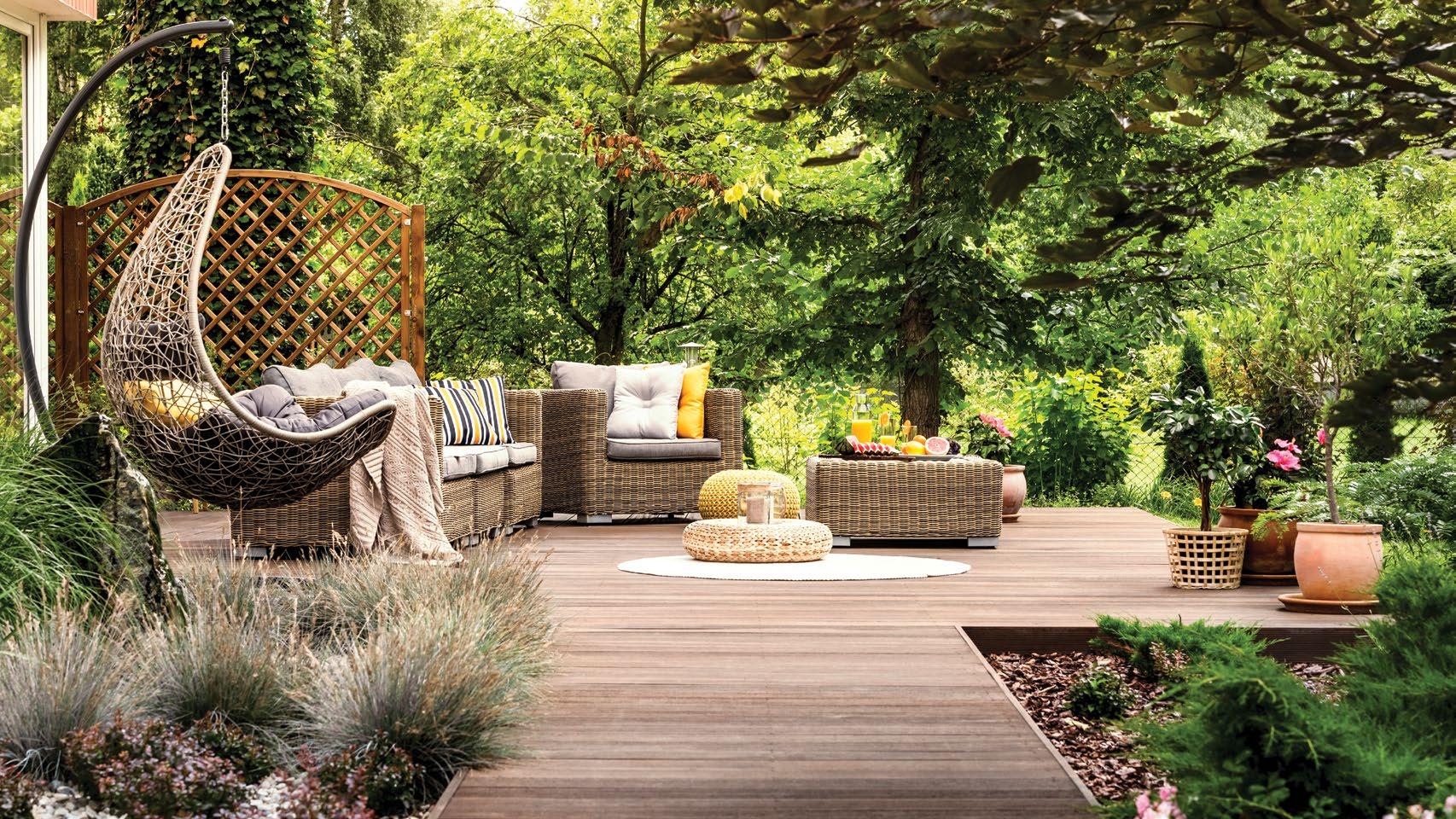 A lot is expected of outdoor spaces — they’re designed to entertain many yet act as a quiet refuge for your silent mornings. Because of this, creating the perfect outdoor sanctuary can be tough. The best method is to start with a timeless foundation, choosing neutral tones for your sofas, chair cushions, and other furniture fabrics. Then, select your color theme and display it carefully around the area with pillows, an outdoor rug, topiaries in decorative pots, colorful trays with scented candles, or other potted florals. Having a classic foundation allows you to express your personality through unique pieces with the option to easily replace them as trends come and go.