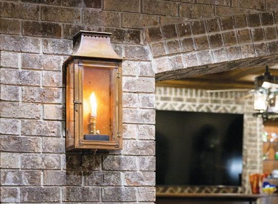 Inspired by old-world French countryside style, this home also features a unique New Orleans flair. The diving roof lines, dormer windows, stone archways, and copper gutters provide plenty of visual interest, all capped by the natural cedar shake roof. The first hints of New Orleans come through in the Bevolo gas lanterns dotting the home’s exterior. Elevated countryside themes continue in the interior with beveled, handscraped, wide plank French oak floors and furniture selections like the chic Bergere chairs flanking the fireplace, and New Orleans charm can be found in the wine room with a speak-