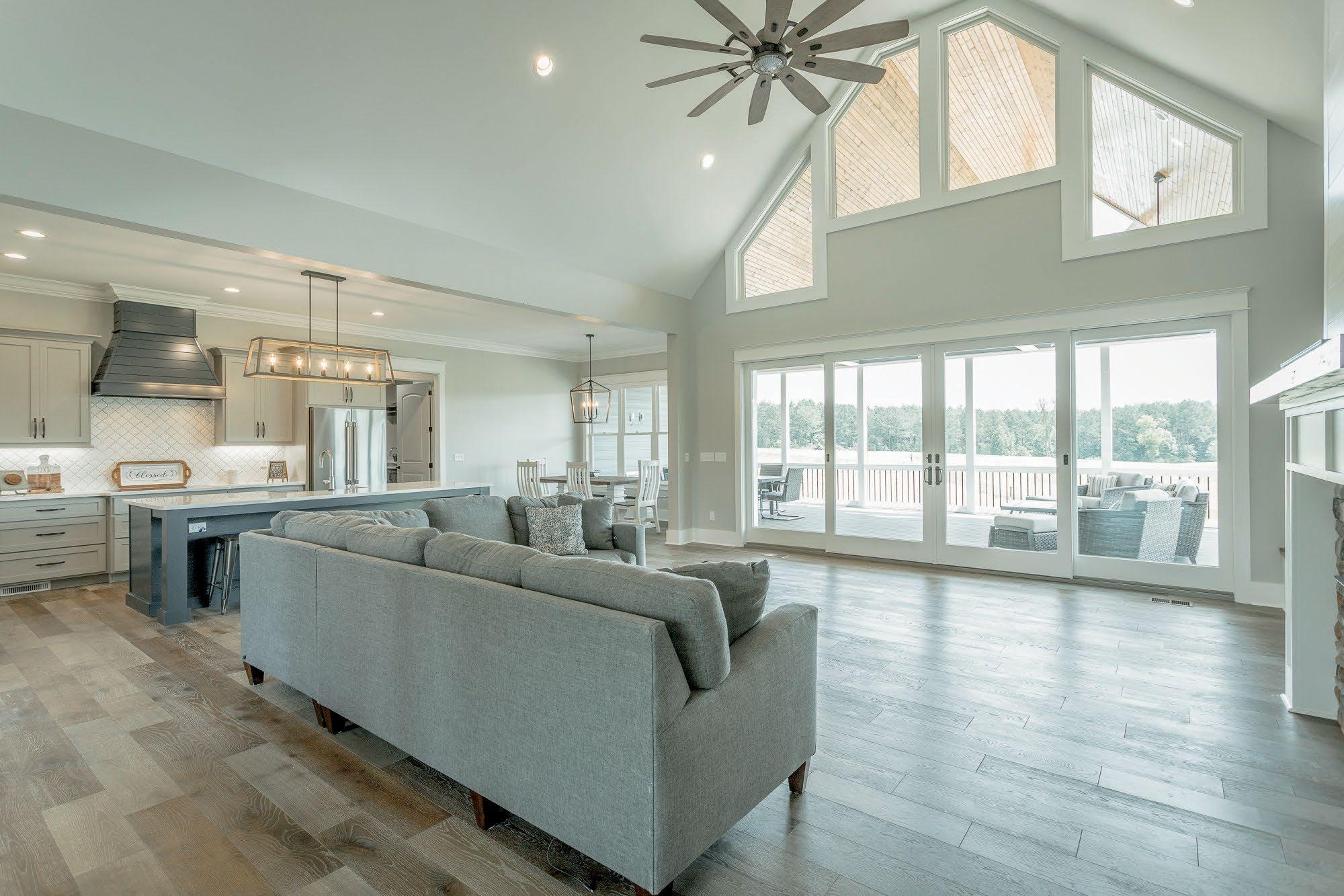and an attached three-car garage. Outdoors, a covered deck with scenic views provides the perfect spot for neighborhood barbecues or a Sunday afternoon siesta. The Farm will also have a future community pool. Nearby to the subdivision, residents can enjoy public lake access and outdoor recreation galore.