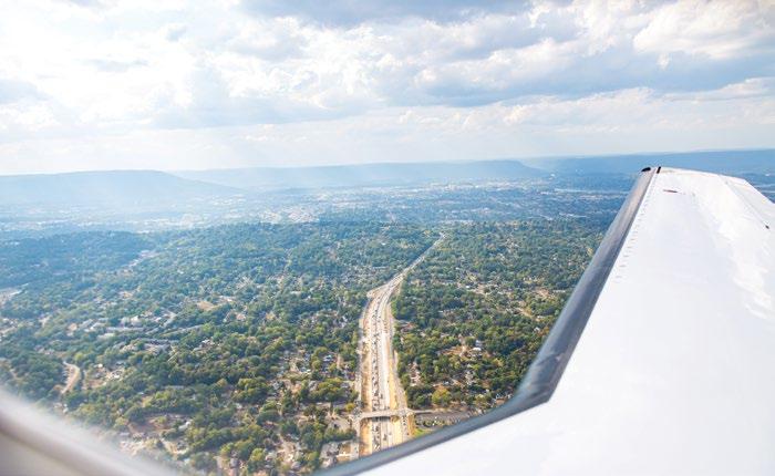 When asked about his most memorable flight so far, Crabtree shares the story of a special flight that turned into an adventure no one would have expected. “A few years ago, our 92-year-old aunt in west Tennessee was to come to Chattanooga for a visit,” he explains. “Her ride didn’t work out, so I got to be the family hero by flying her here. Oh, I made her fly the airplane, too. Got pictures to prove it.”