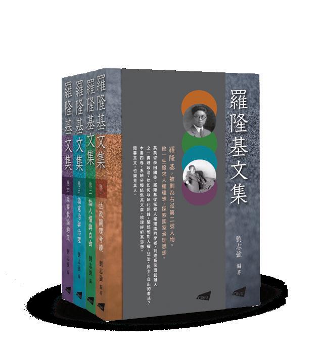 羅隆基文集 (共4卷) Selected Works of LUO Longji (4 Volumes) (in Chinese) 編 劉志強 廣州大學人權研究院教授、博士生導師、廣州學者特聘教授 此文集的時間跨度為1918至1965年,共分四卷,由內地著名學者劉志強選編,探究羅隆基的現代性思想。運用大量珍貴 的第一手史料,讓大眾了解羅氏的現代性思想如何為中國近現代發展帶來獨特而深刻的借鑒意義。 978-962-937-626-0