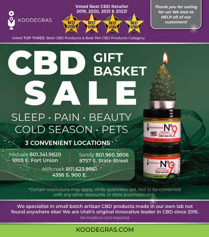 DECEMBER 22, 2022 | 37 | CITYWEEKLY.NET | | COMMUNITY | | CITY WEEKLY | at LOST ACORN GALLERY 752 e 6th ave, SLC book now @lostacorngallery Get Lost at the Acorn Couples - $100 Solo - $75 Fri • Sat • Sun •no experience needed! GLASS BLOWING CLASSES 801-804-3166 | info@empathetix.com UTAH’S SIMPLEST MEDICAL MARIJUANA CARD SCREENING Schedule your consult today!! APPLY NOW AT PROMO CODE: WECare420 for $40 OFF 2022 weekly For more information about