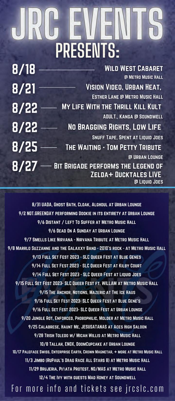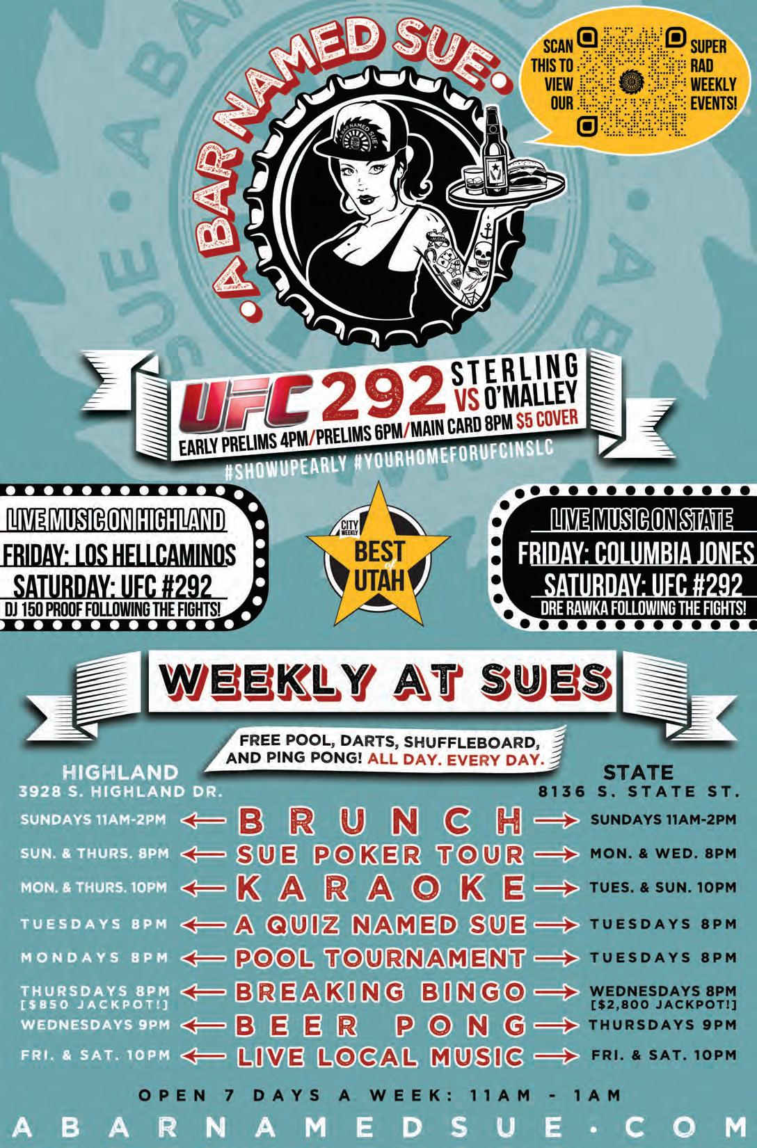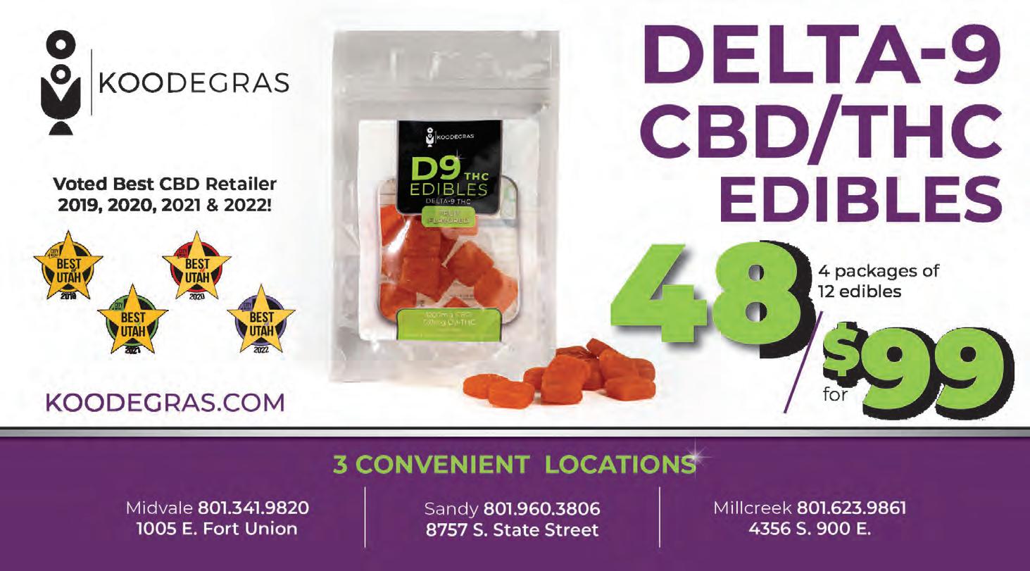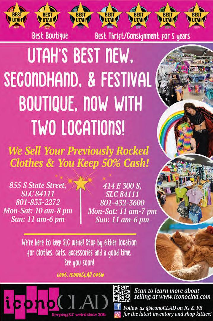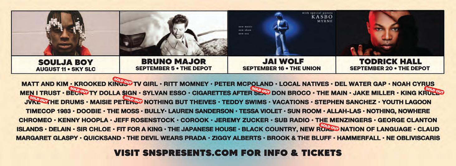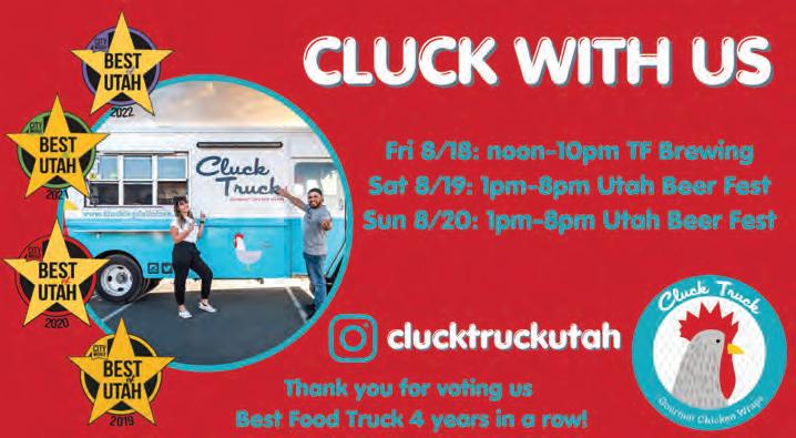 The 2023 City Weekly Utah Beer Festival runs Aug. 18 – 19 at The Granary Live (742 S. 500 West), 2 p.m. – 8 p.m. daily. Per-day tickets are $15 per day for entryonly/designated driver, $30 general admission (including 10 beverage punches), $35 for early beer drinkers (1 p.m. admission) and $75 VIP; full weekend tickets are also available. Refill punches will also be available onsite. Visit utahbeerfestival. com for tickets and additional event information. (SR)