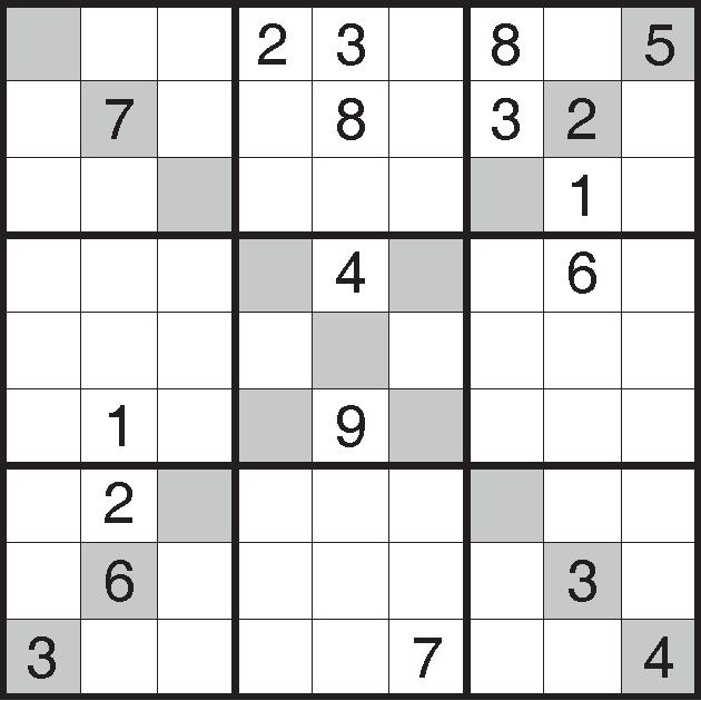 Complete the grid so that each row, column, diagonal and 3x3 square contain all of the numbers 1 to 9. No math is involved. The grid has numbers, but nothing has to add up to anything else. Solve the puzzle with reasoning and logic. Solving time is typically 10 to 30 minutes, depending on your skill and experience.