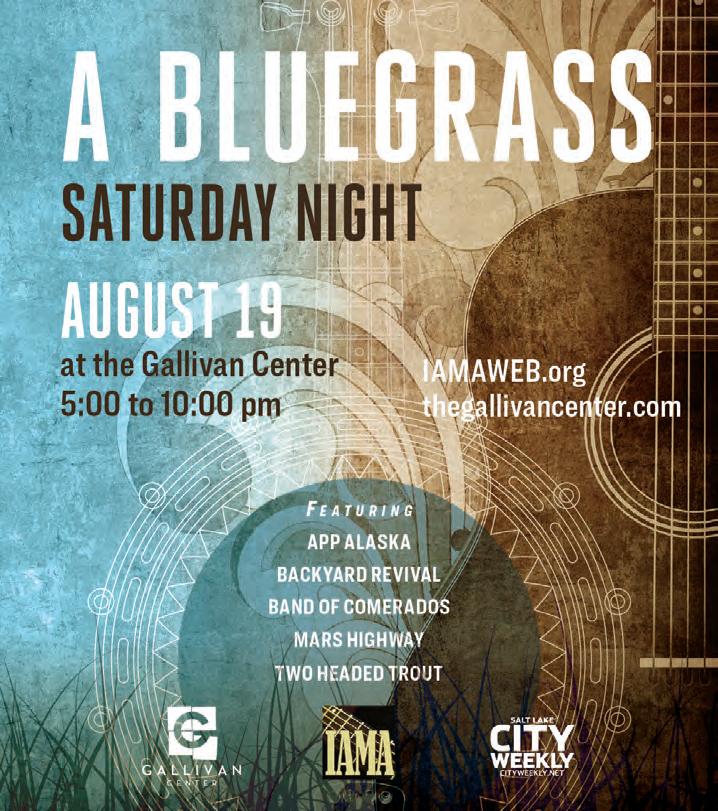 Hold on to your hats and fasten on your starshaped studded belts— it’s A Bluegrass Saturday Night under the velveteen late-summer city sky. Beginning in the early evening twilight and continuing on into the bedazzling darkness with not one, not three, but five bluegrass-based acts at the top of each hour, this promises to be a weekend for the books. The robust line-up offers performances by AppAlaska, The Backyard Revival, Mars Highway, Two Headed Trout and Band of Comerados. As each and every band slotted to take the stage is a highly regarded talent in their own right, this mini-fest guarantees a best-in-the-business block party that will please both newcomers and veteran bluegrass enjoyers alike. Hosted by the trusty local non-profit Intermountain Acoustic Music Association (IAMA), it’ll be a night that you can bet will run as smooth as a slab of butter on a hot piece of sourdough, each detail carefully and painstakingly planned with the intention of creating a desirable event for music lovers across the Salt Lake Valley. Oh! I forgot to mention the best part: This sweet little gig is 100% free. That’s right, you heard me correctly: F-R-E-E. There’s no excuse! Get off your butt and get down to the Gallivan to do a little dancing and soak up a lot of sounds. The music begins right at 5 p.m. and runs until 10 p.m. No need to find a sitter, either, since this all-ages concert is fun and fit for the whole family. (Sophie Caligiuri)