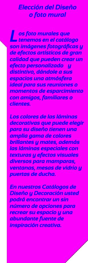 Diseñamos, imprimimos e instalamos imágenes de calidad para decorar salas, habitaciones personales, salones de reunión, lobby`s, recepciones en casas u oficinas, stands de exposiciones, publicidad interior y exterior. Contamos con un banco de variadas imágenes.
