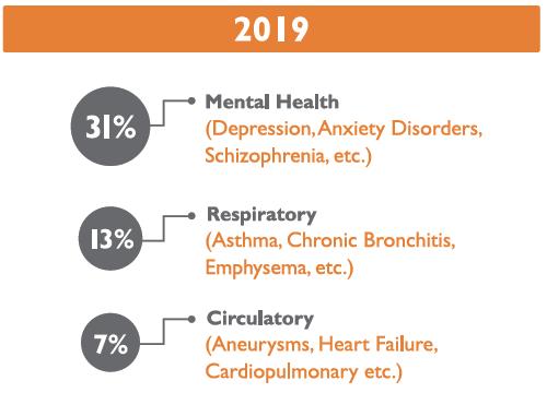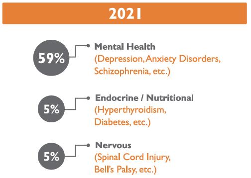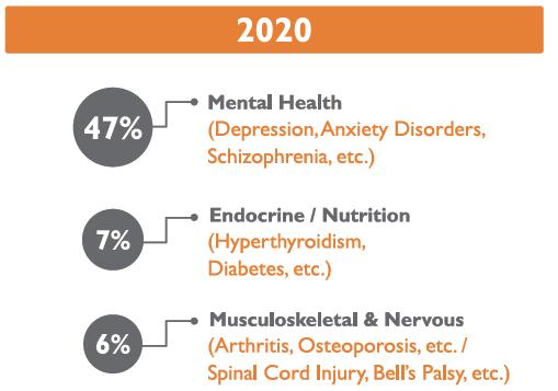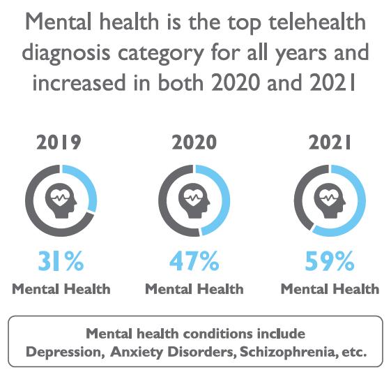 With the exception of MH, top telehealth diagnoses categories per year have changed