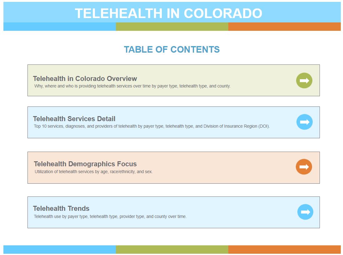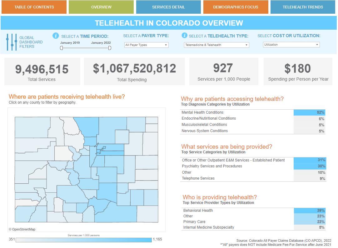 • Learn what types of services Coloradans are accessing via telehealth and how it differs by payer and region