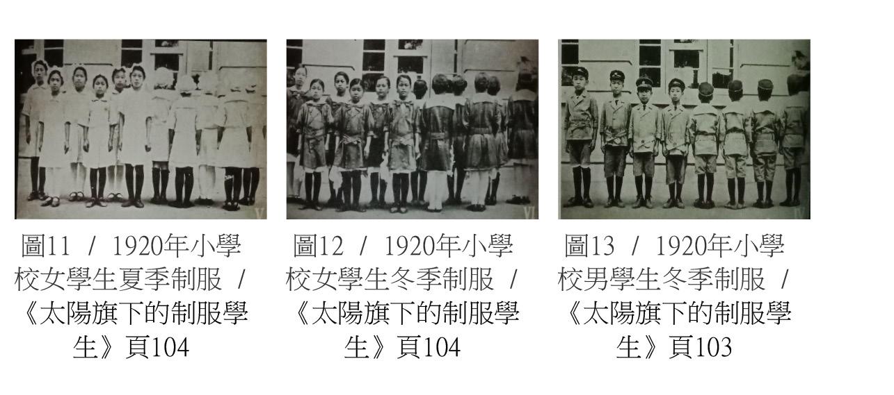以日籍學生就讀為主的小學校,以西元1920年為分界, 在此之前的學生多穿著和服上學,並對和服進行改良以便穿著; 西元1920年後,小學校則陸續為學生制定整套洋式制服。