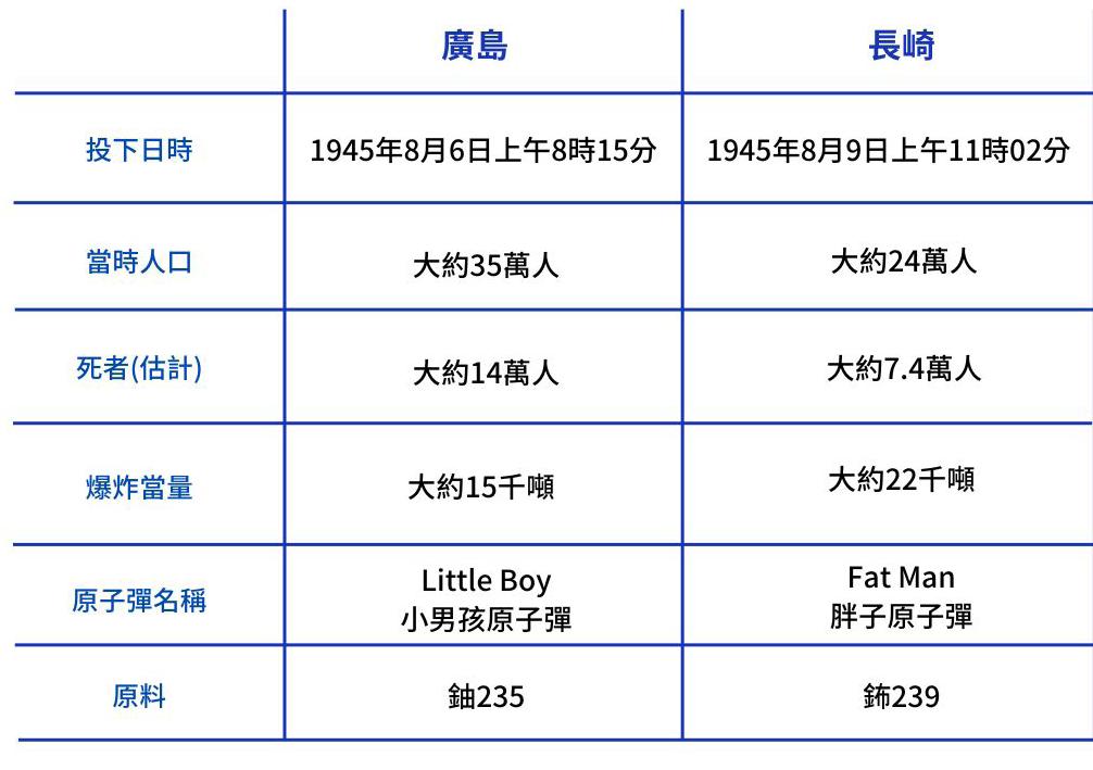 相較廣島與長崎,廣島相比受害很大