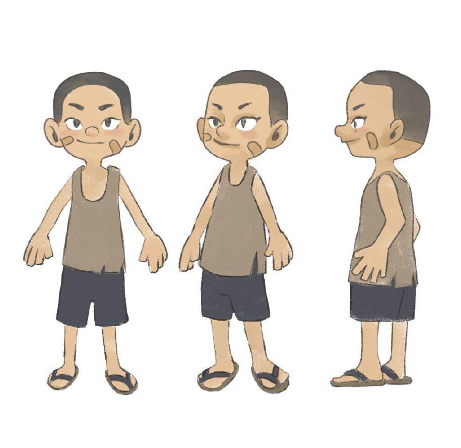 年齡12歲,出生在營業雜貨店的家庭,家境小康,家中七名 小孩裡排行老二,是街區中的孩子王。