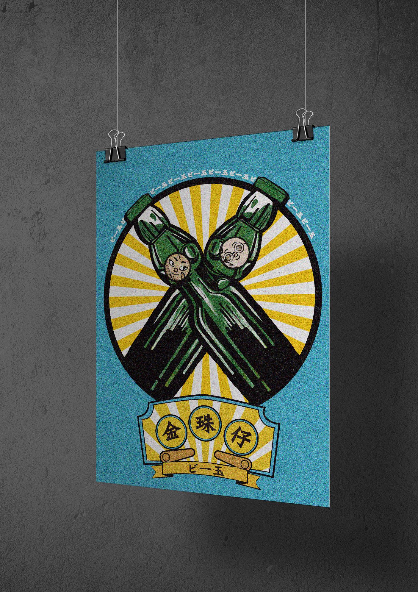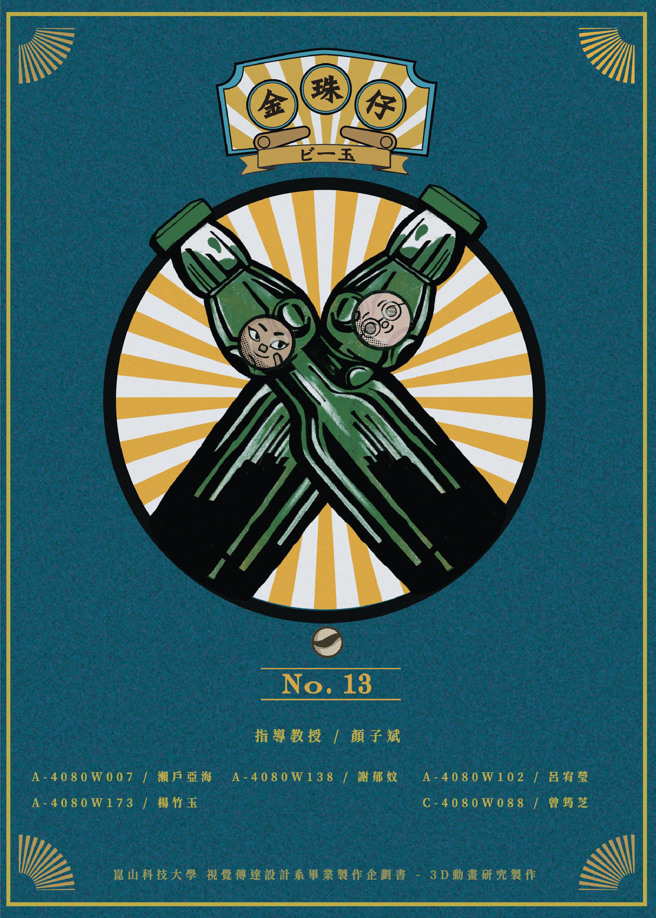 透過彈珠汽水的 藍色 玉子色,加上放射狀的視覺 效果,讓作品呈現出「復古」與「童真」 進一步敘述「語言與階級並非絕對,真正可貴的是 友誼」的理念。