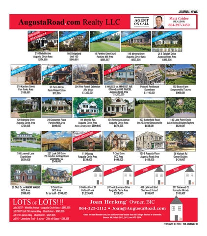 Joan Herlong* Owner, BIC 864-325-2112 • Joan@AugustaRoad.com *She’s the real Number One, has sold more real estate than ANY single Realtor in Greenville. Source: MLS stats 2012, 2013, and YTD 2014.