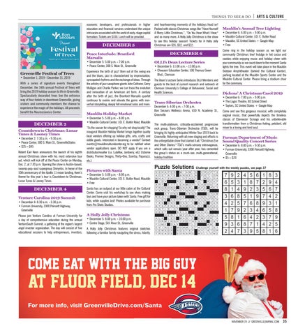 at fluor field,, Dec 14 For more info, visit GreenvilleDrive.com/Santa NOVEMBER 29 // GREENVILLEJOURNAL.COM