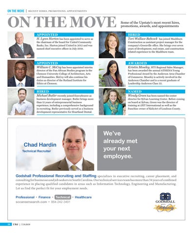 Godshall Professional Recruiting and Staffing specializes in executive recruiting, career placement, and consulting for businesses and job seekers in South Carolina. Our technical services team has more than 34 years of combined experience in placing qualified candidates in areas such as Information Technology, Engineering and Manufacturing. Let us find the perfect fit for your employment needs. Professional • Finance • Technical • Healthcare sccareersearch.com • 864-242-3491