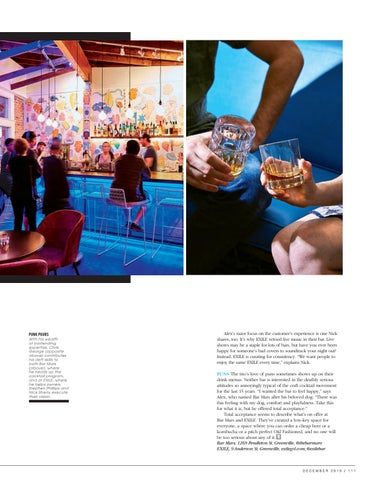PUNK POURS With his wealth of bartending expertise, Chris George (opposite above) contributes his deft skills to both Bar Mars (above) , where he heads up the cocktail program, and at EXILE, where he helps owners Stephen Phillips and Nick Sherry execute their vision.