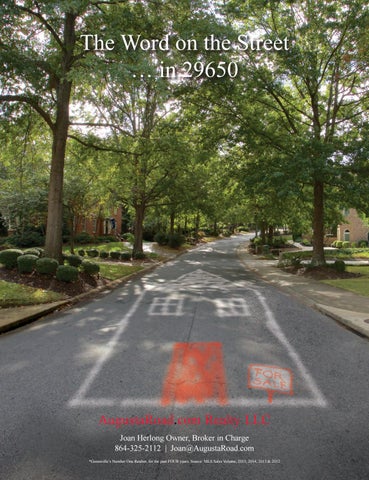 AugustaRoad.com Realty LLC Joan Herlong Owner, Broker in Charge 864-325-2112 | Joan@AugustaRoad.com *Greenville’s Number One Realtor, for the past FOUR years. Source: MLS Sales Volume, 2015, 2014, 2013 & 2012
