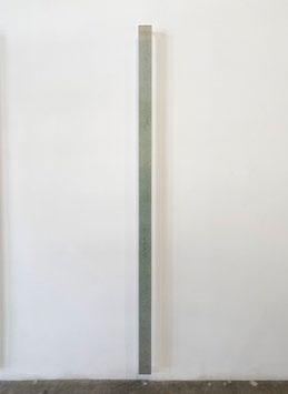 Ron Cooper Chinoise with Big Green Particles and Multi-Colored Heavy Density Particles, 2021 lacquer and pigment on plexiglass 96 x 3.625 x 3.625 in.