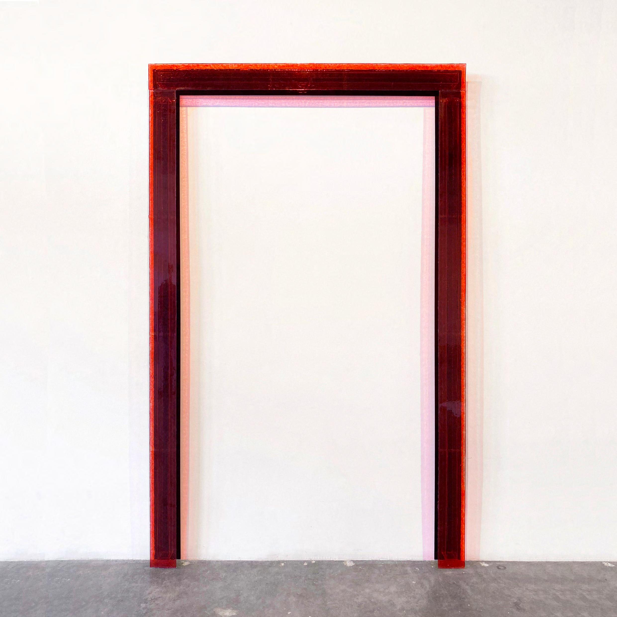plexiglass, polyester resin, red pigment, and fiberglass